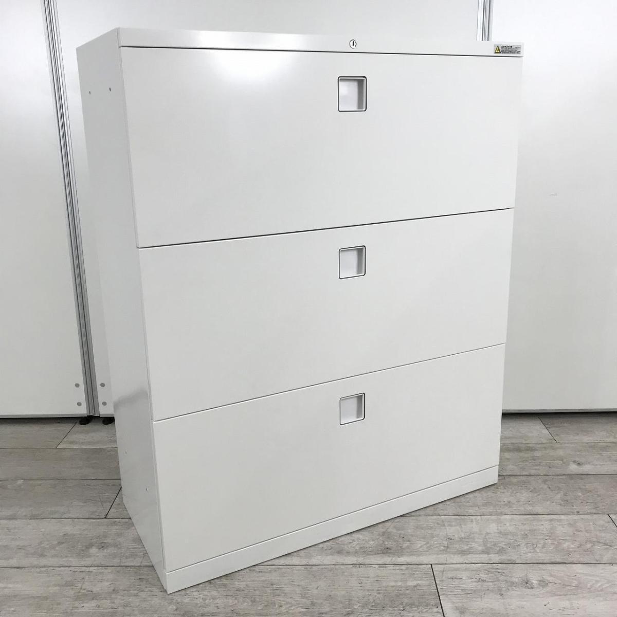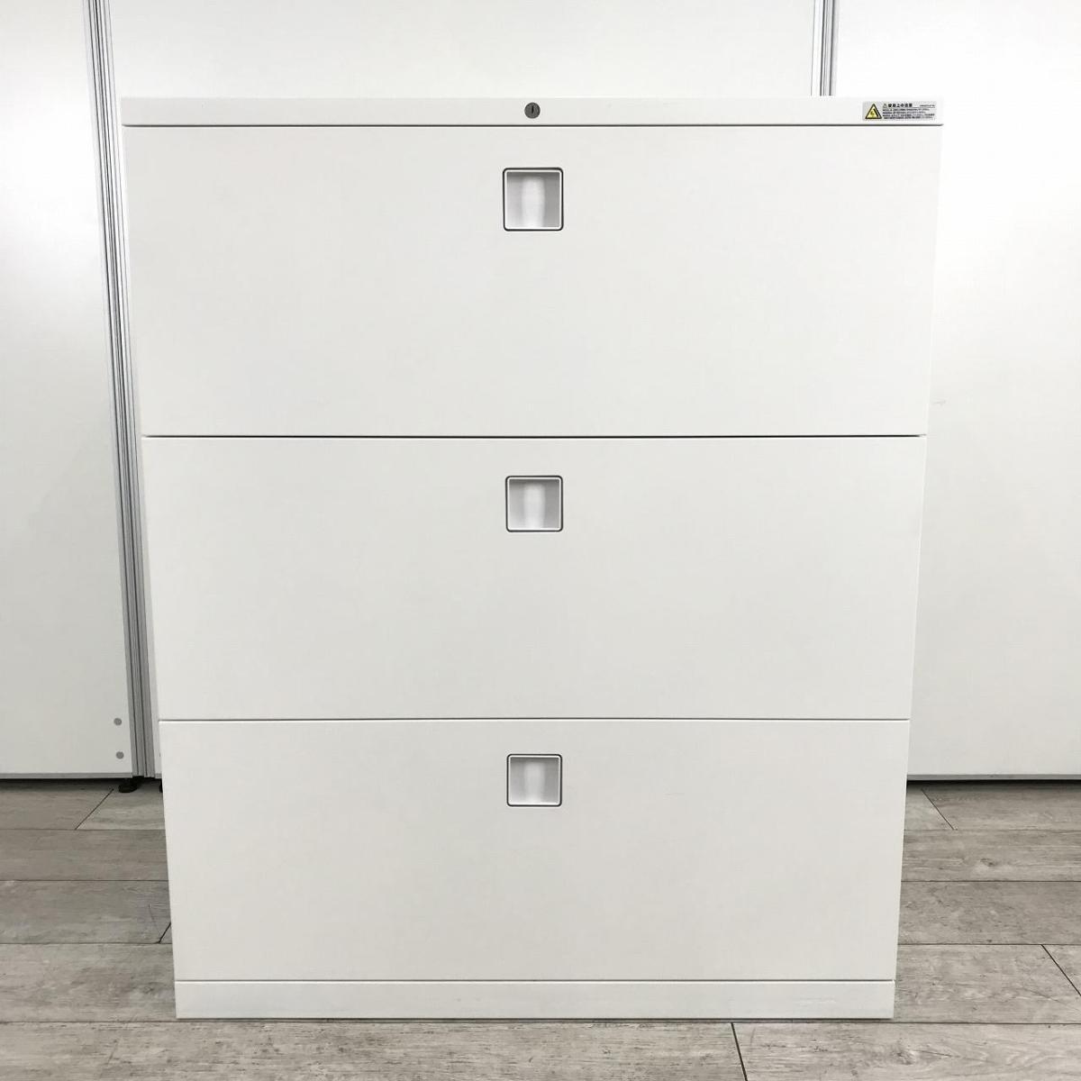【高品質で使いやすい!上下左右から開閉操作できる!】■オカムラ レクトラインシリーズ 3段ラテラル書庫 ホワイト天板付 ■ファイル収納にオススメ!引出し型キャビネット【Okamura Rectline】