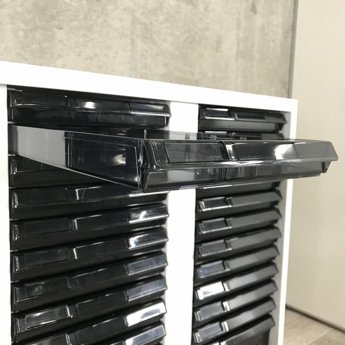 【書類・備品整理の必需品!】【珍しいクリトレが入荷!3列×浅型11段+深型6段】■ウチダ(UCHIDA)製 BEストレージシリーズ クリスタルトレー ローキャビネット ■3列×浅型11段+深型6段 ■色:ホワイト/トレイ:ブラック