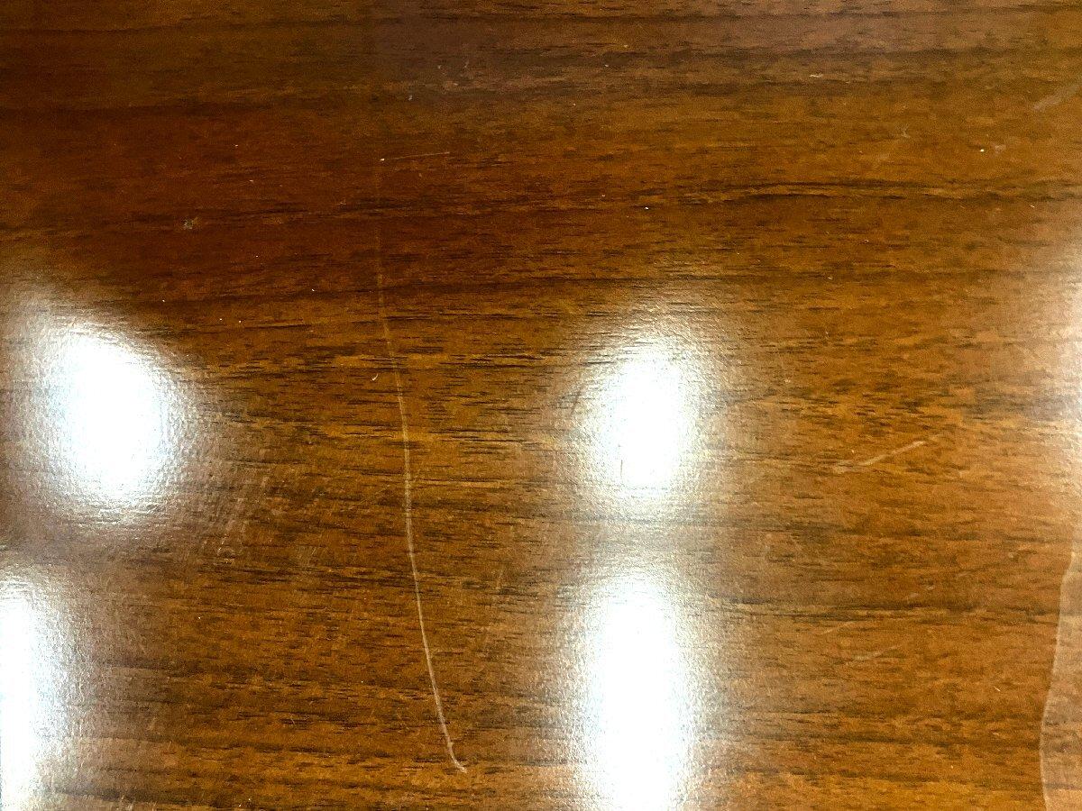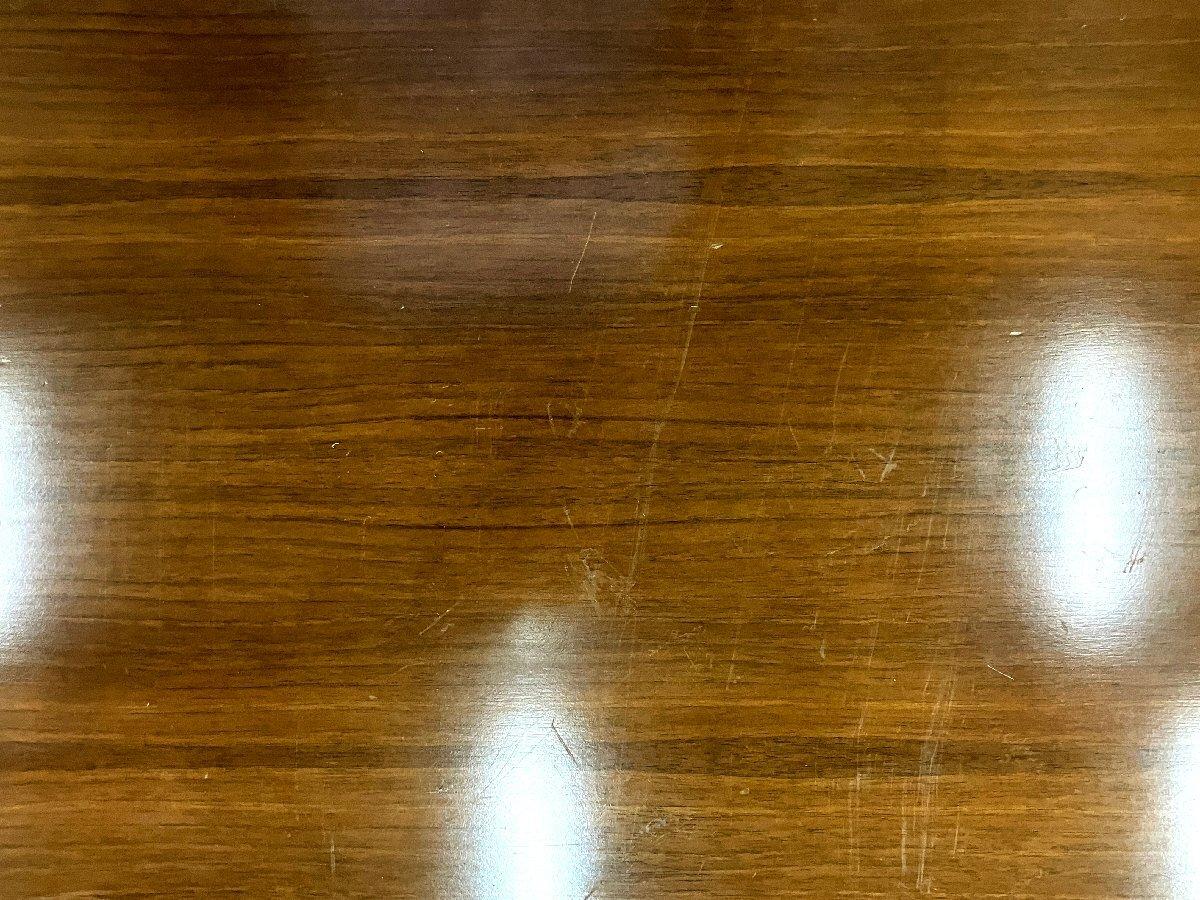 - あり黄ばみ・変色が広い範囲にうっすらある、または濃い黄ばみ・変色が一部ある。(例、天板、幕板、棚板、サイド部分、脚部等にある。)
