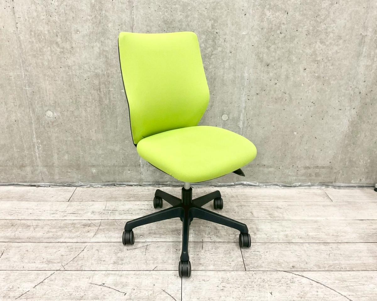【在庫入替セール品】【やわらかな座り心地を実現!腰への負担を減らすS字形状!】■オカムラ(okamura)製 CG-Mチェア 肘無ローバックチェア パッド仕様 ■ライムグリーン【弊社使用欄:A01006389 K】