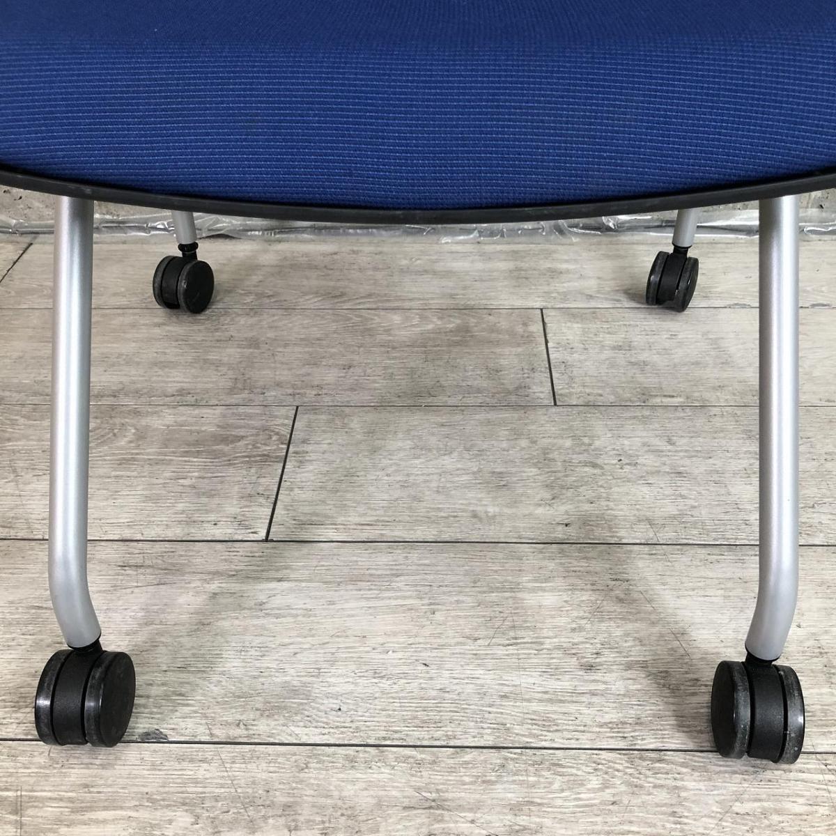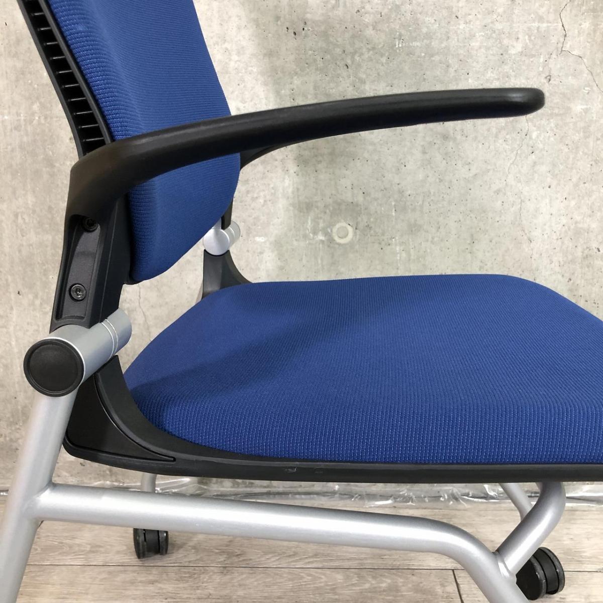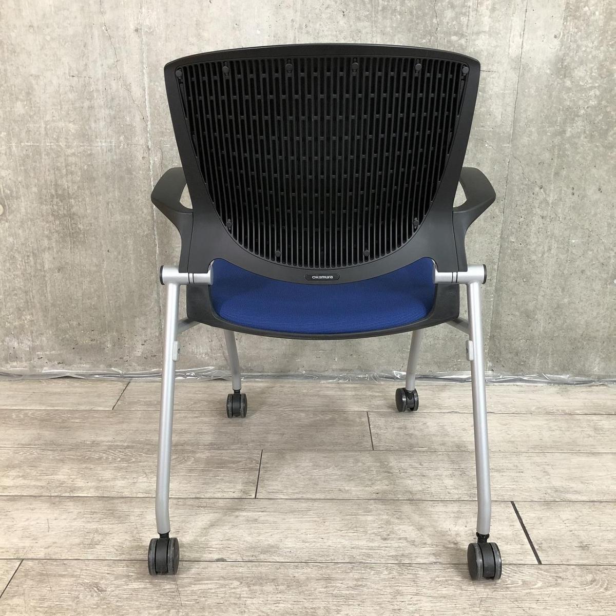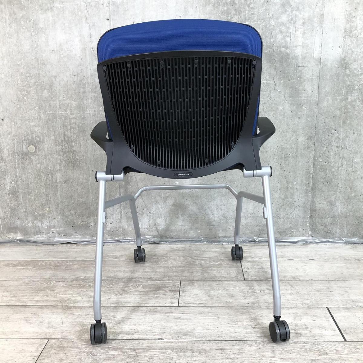 【しなやかにワーカーを受け止める洗練されたデザイン!使わない時はネスティング収納!】■オカムラ(okamura)製 グラータ(Grata) ミーティングチェア ネスティング ■背面樹脂メッシュ ■ブルー