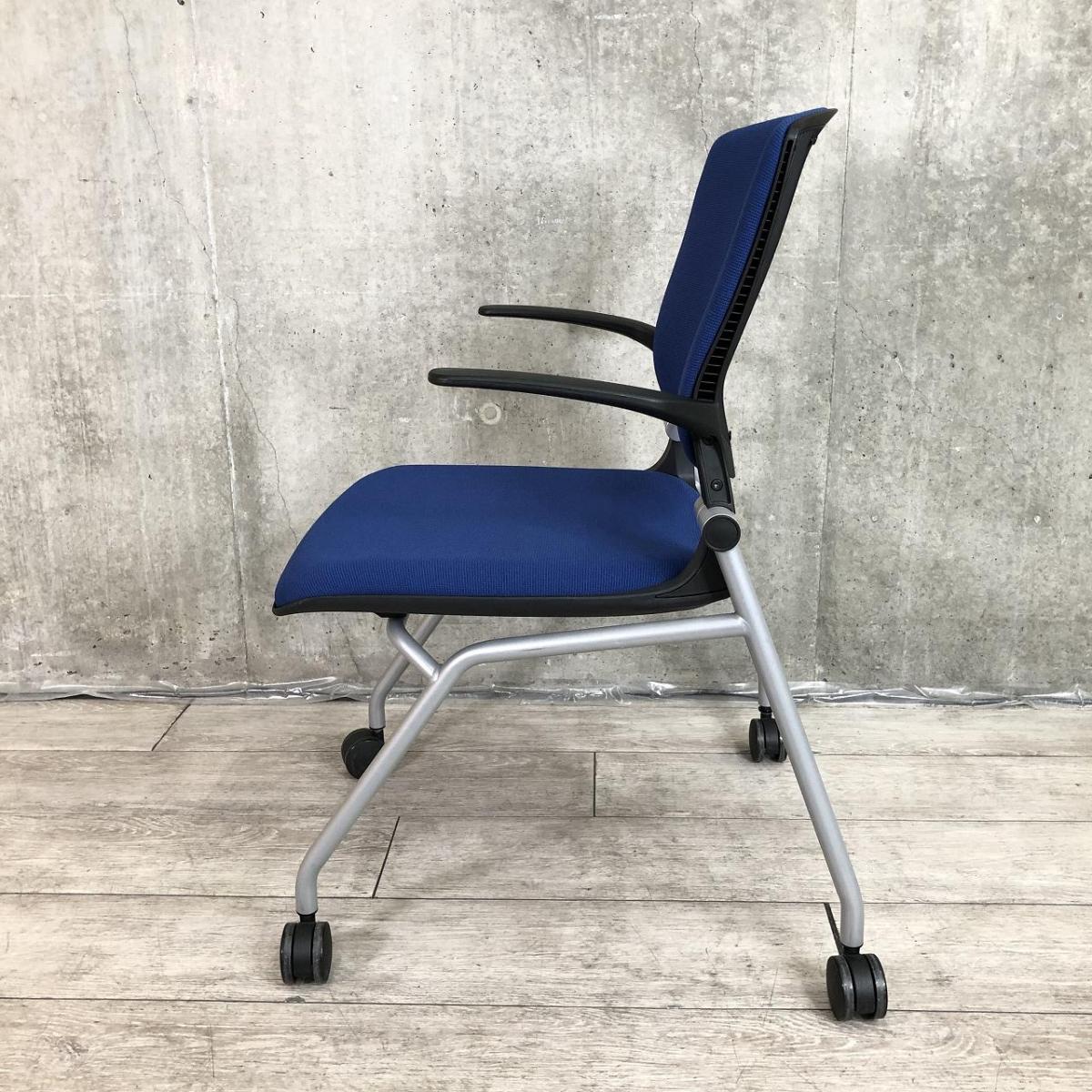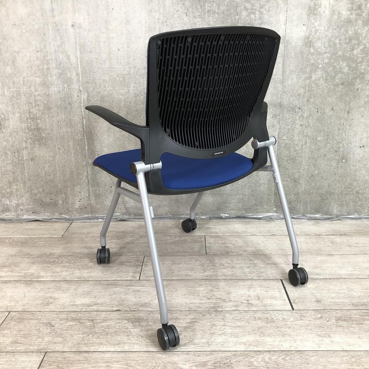 【関東倉庫在庫品】【スリット構造のシェルがワーカーを軽やかに受け止める!】■オカムラ(okamura)製 グラータ(Grata)チェア ネスティングチェア ミーテイングチェア ■固定肘付き ■背パッド付き ■キャスター付き ■ブルー【弊社使用欄:A01001454】【ECBMC】- 渋谷サテライト