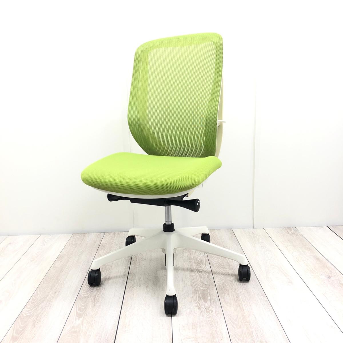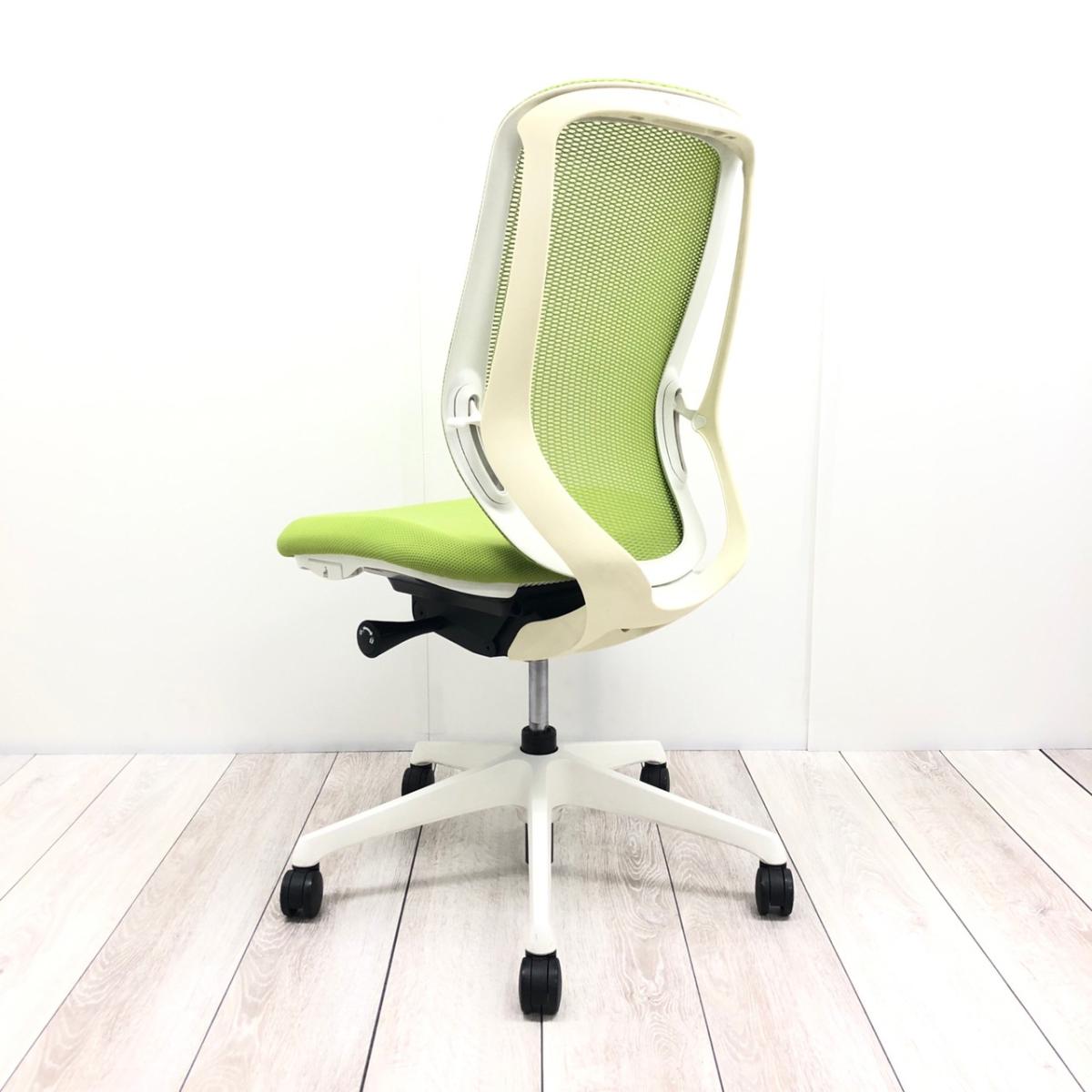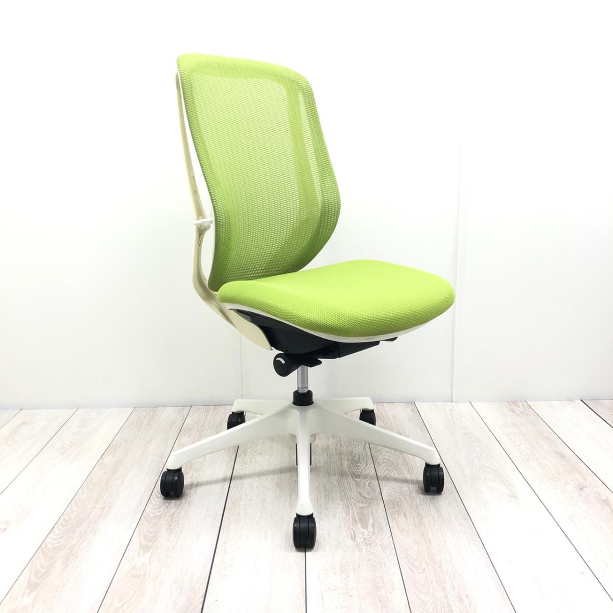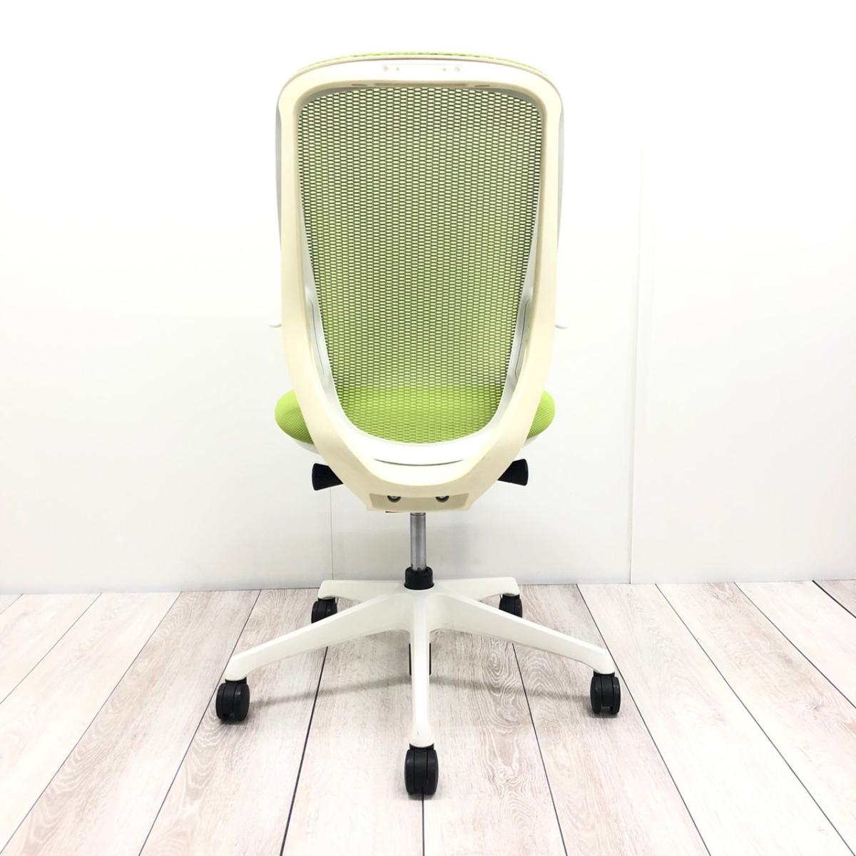 オカムラ製 シルフィーシリーズ ライムグリーン ホワイトフレーム 背面クッション コートハンガー付き 快適な座り心地を実現! 人気シリーズの背面クッションモデル! 肘無しハイバックチェア!!