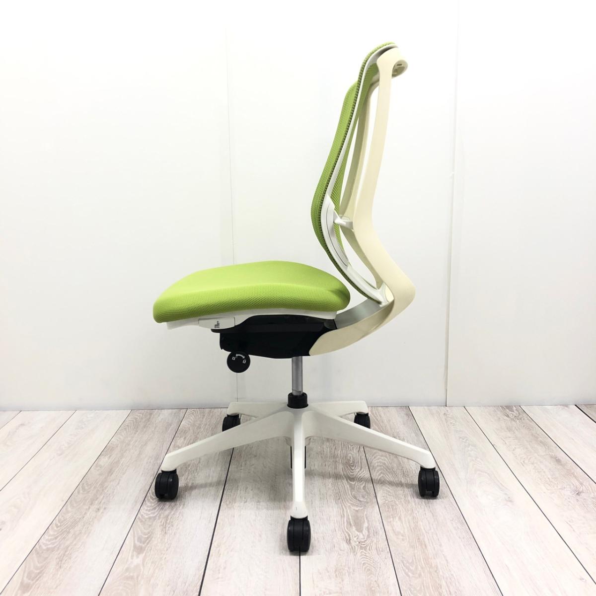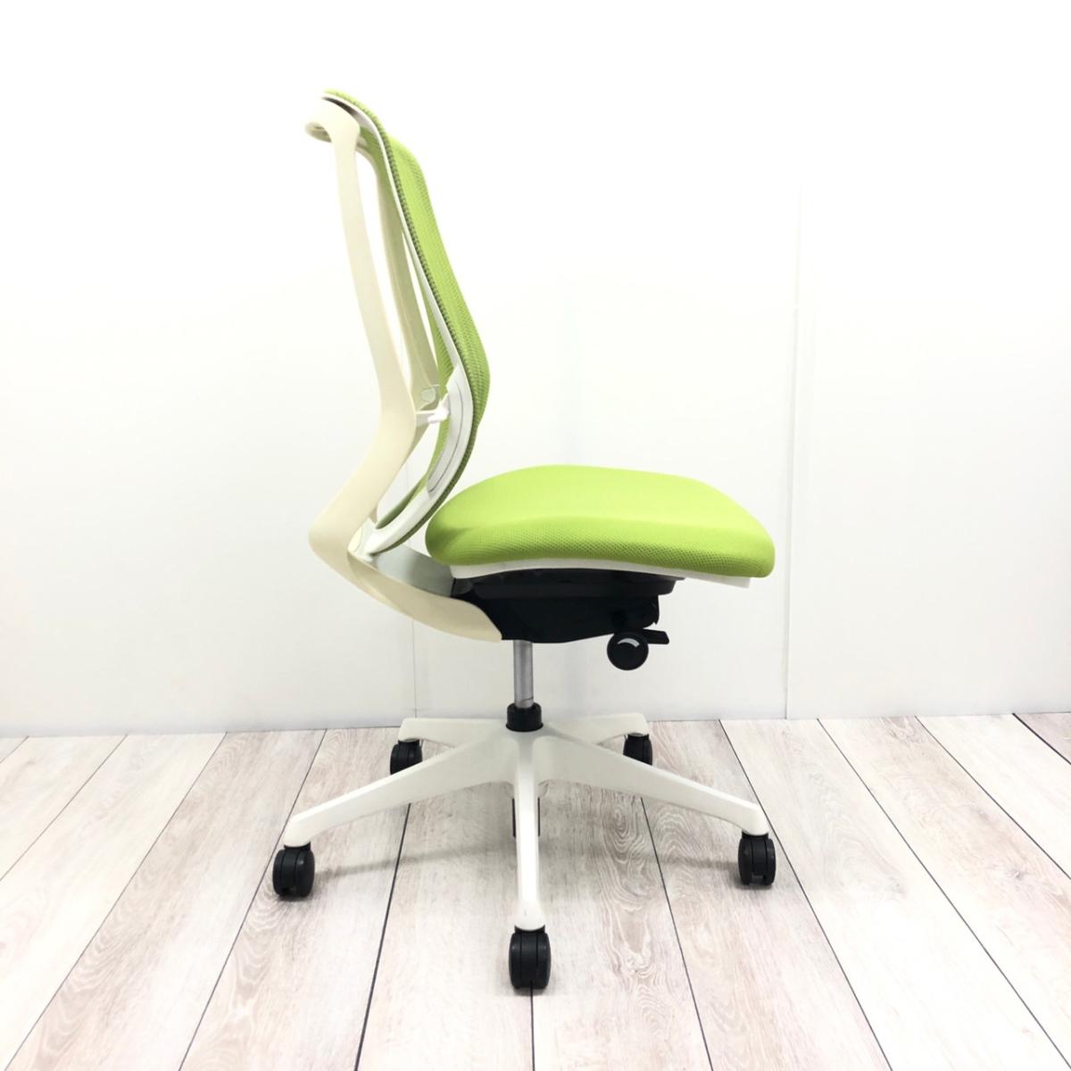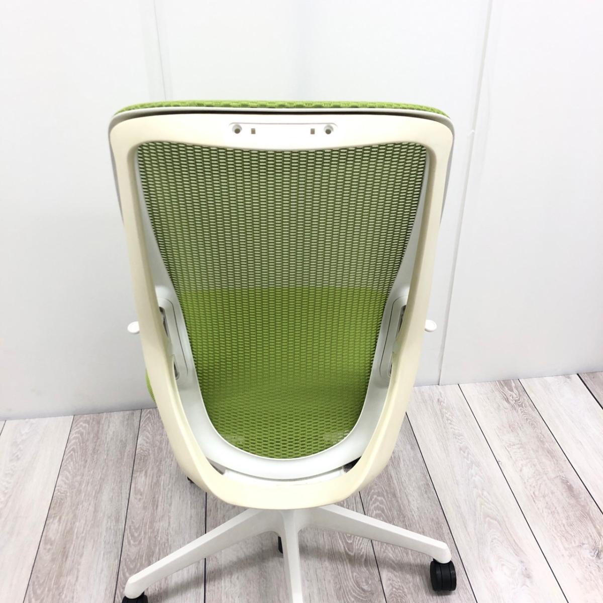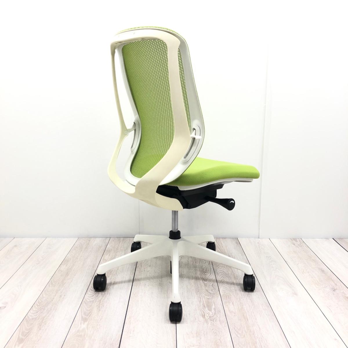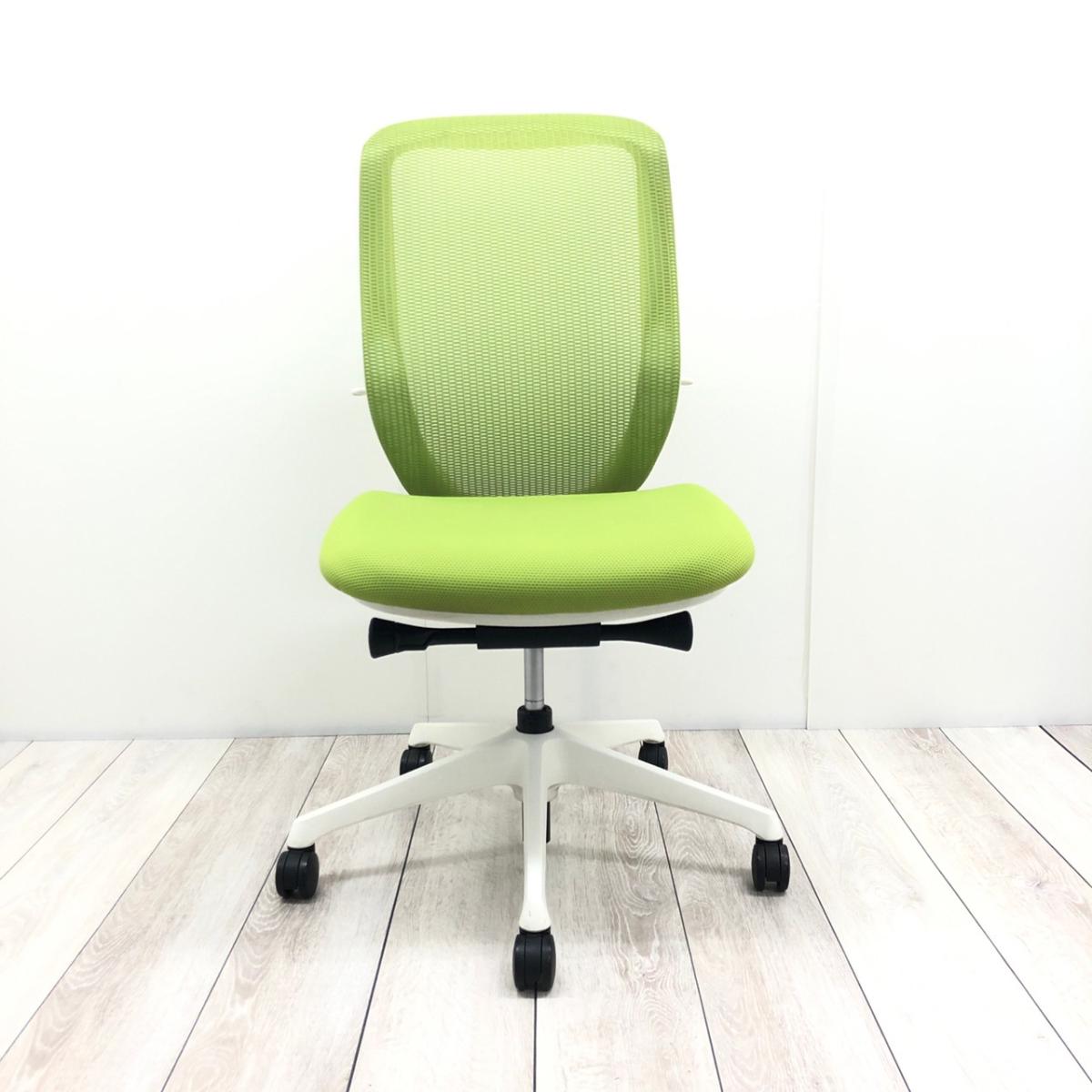 オカムラ製 シルフィーシリーズ ライムグリーン ホワイトフレーム 背面クッション コートハンガー付き 快適な座り心地を実現! 人気シリーズの背面クッションモデル! 肘無しハイバックチェア!!