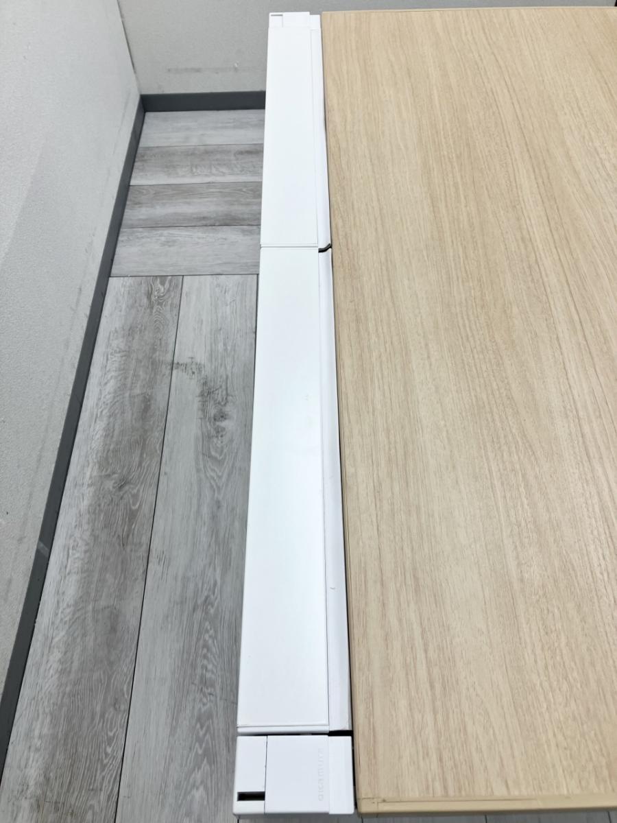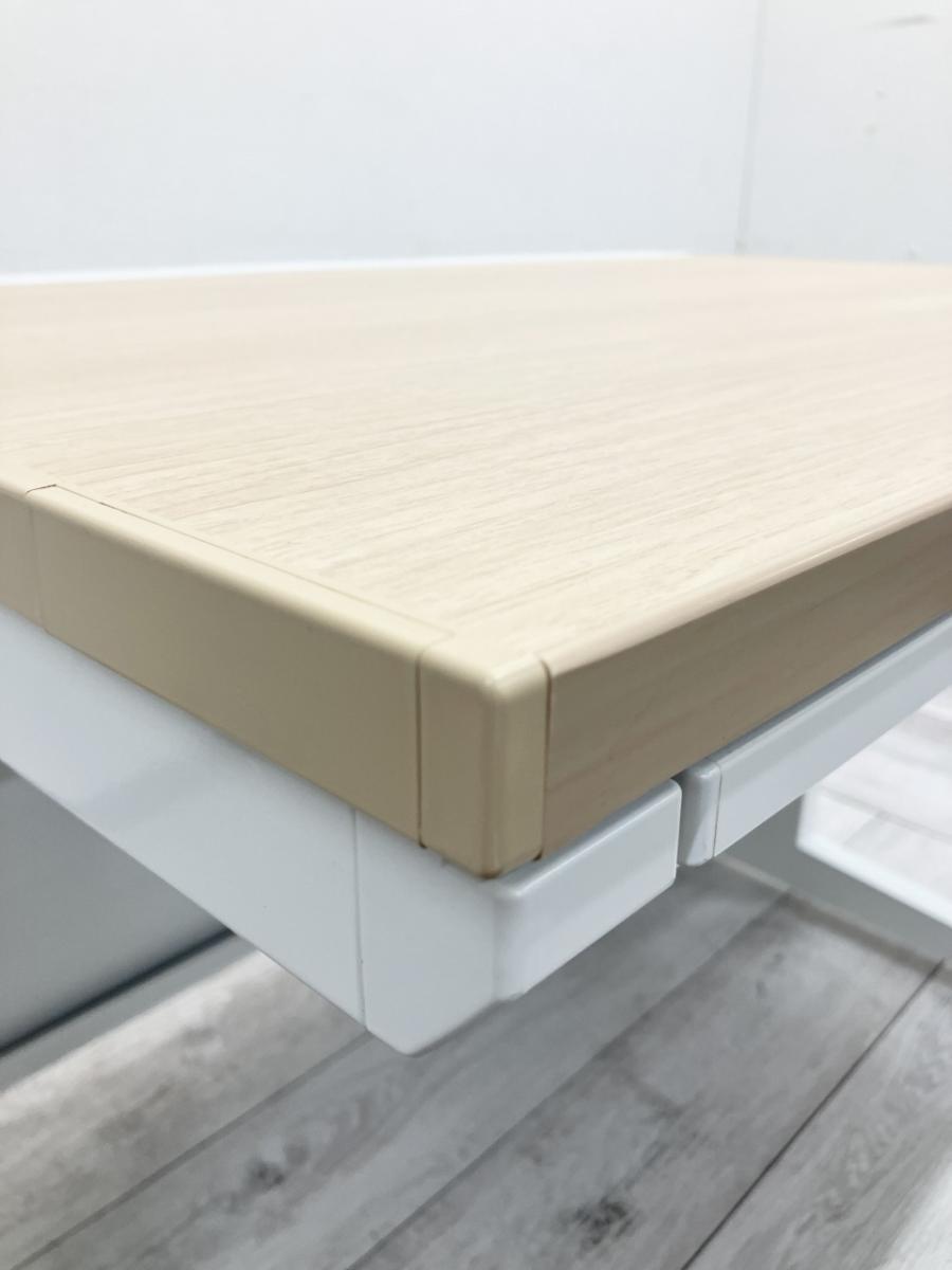 ナチュラルな木目天板とホワイト脚が爽やかな印象の片袖なしデスクです。
