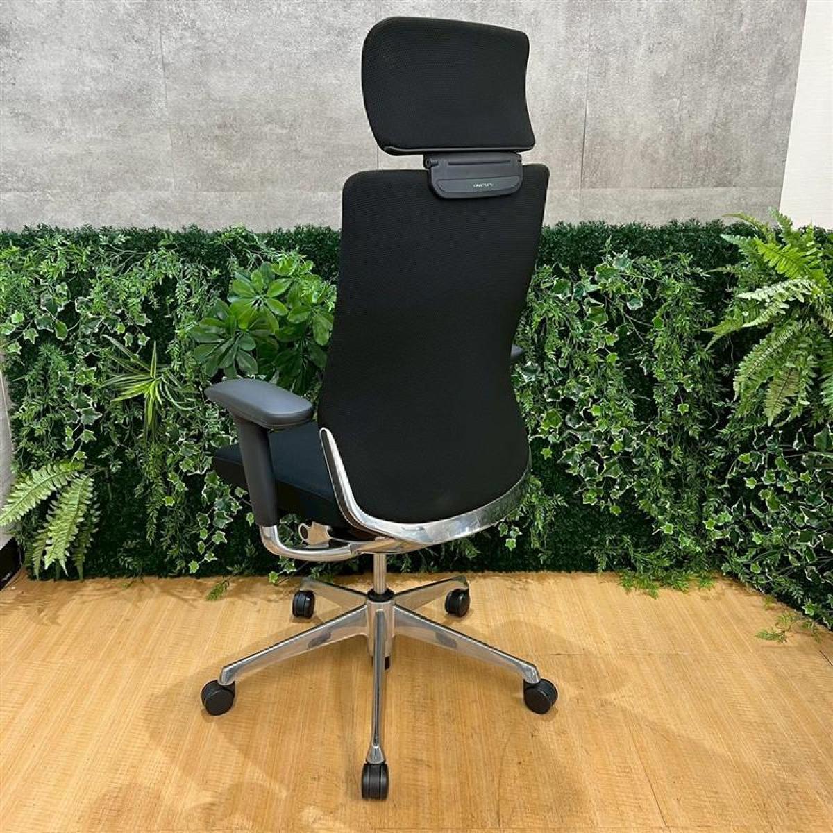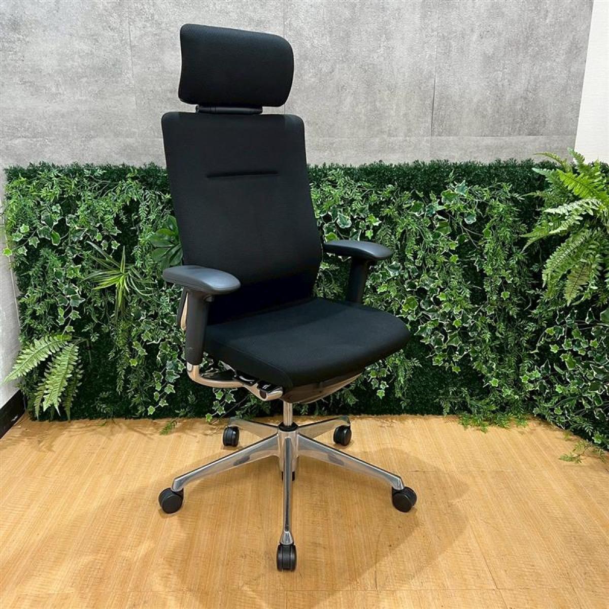 【先行商品!】【機能性抜群の人気チェア!自然な姿勢をサポートするアンクルチルトリクライニング搭載!】■オカムラ(okamura)製 コーラルチェア(Choral) 肘付 エクストラハイバックチェア ファブリックタイプ ■可動肘・ヘッドレスト付 ■ブラック