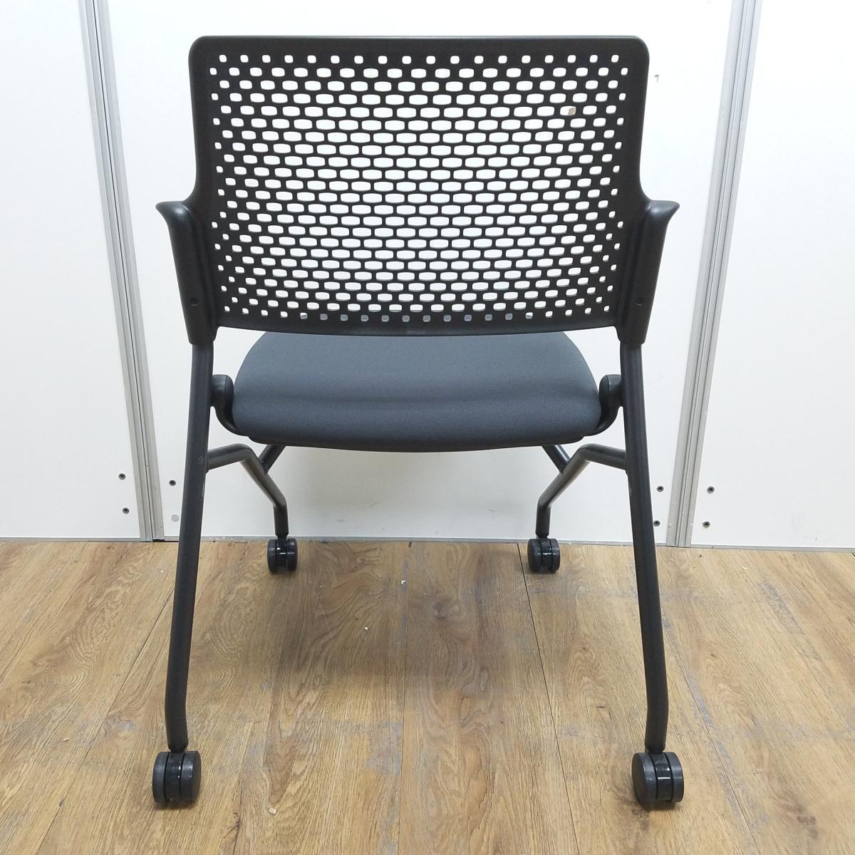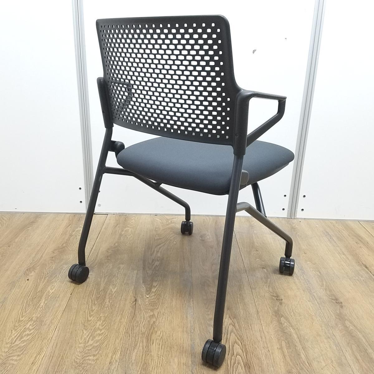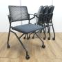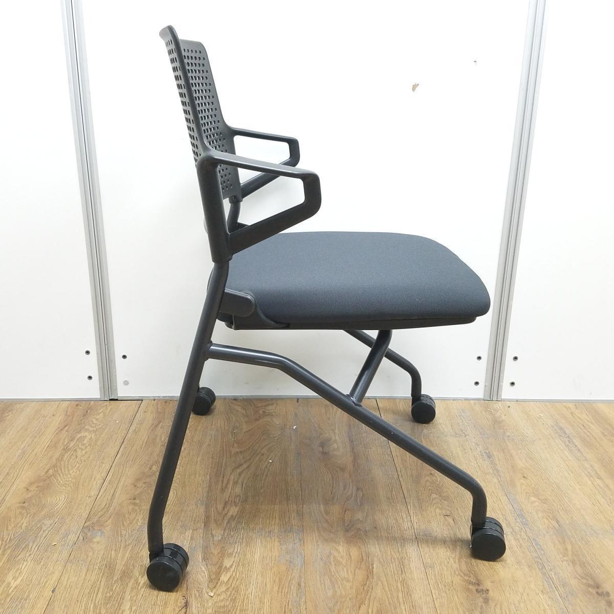 【4脚セット!!】ウチダ製 FM-345 ダークグレイ 肘付き 会議用 キャスター付 背面樹脂メッシュ 折り畳んで収納! キャスター付で動作も楽々! ネスティングチェア!!- 京都東寺店