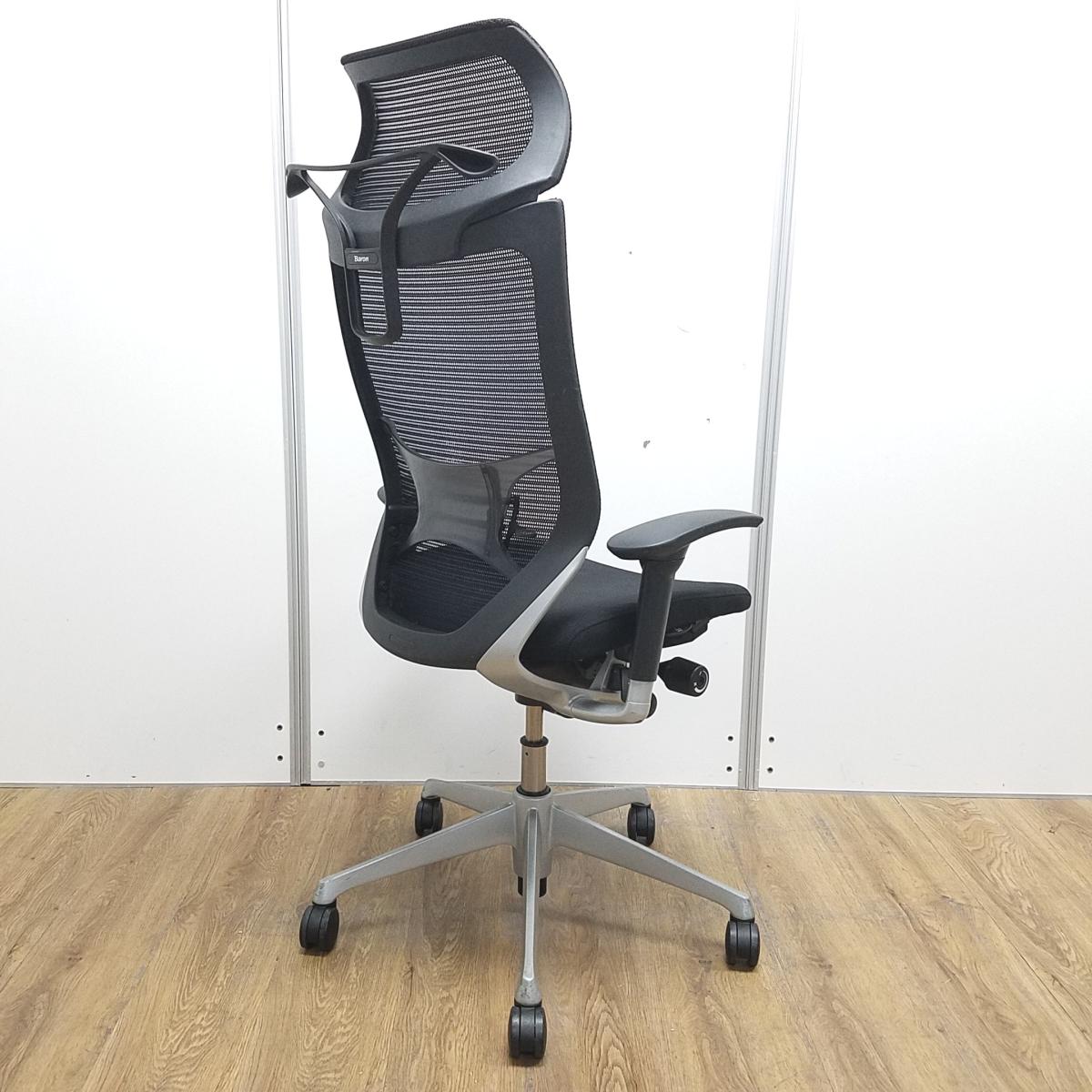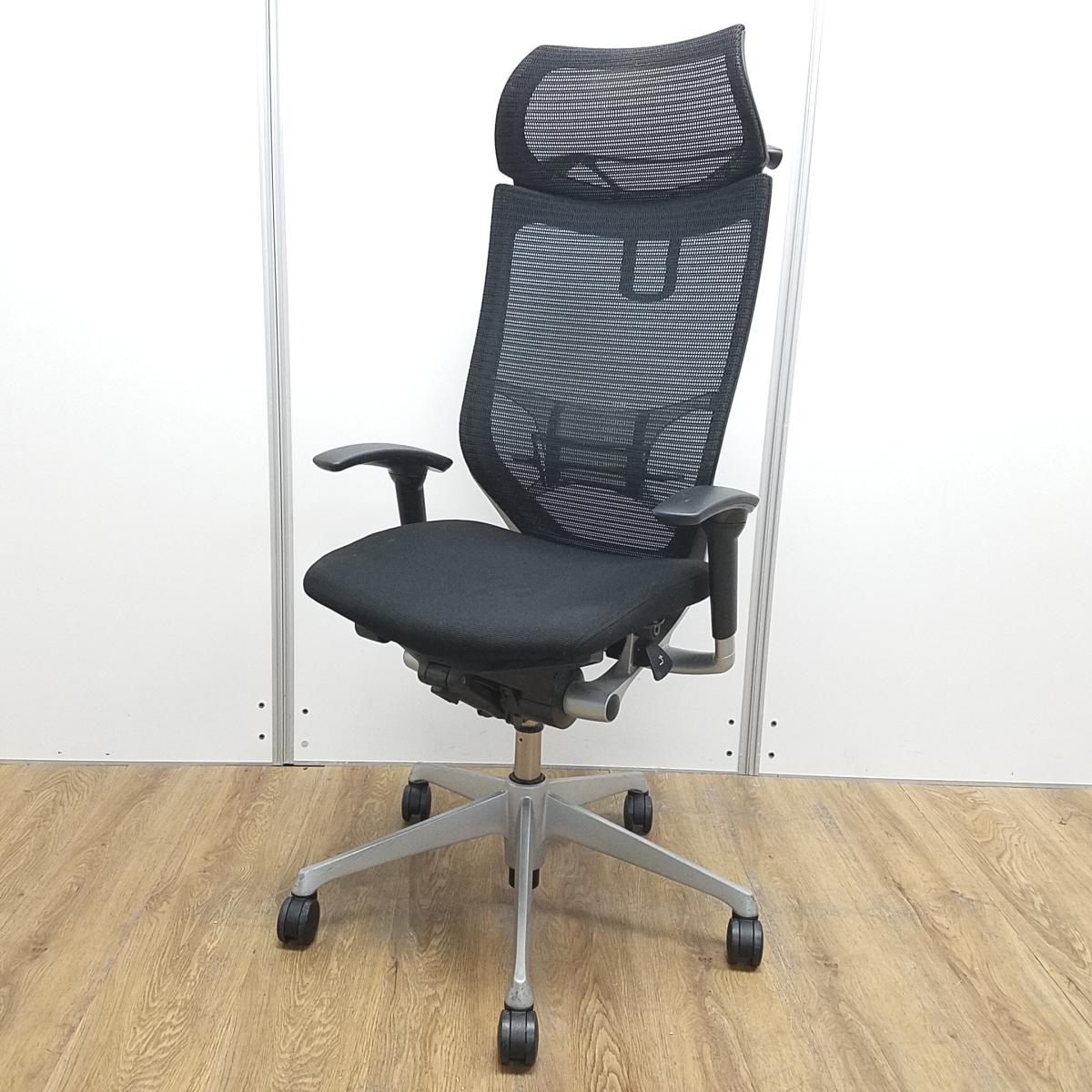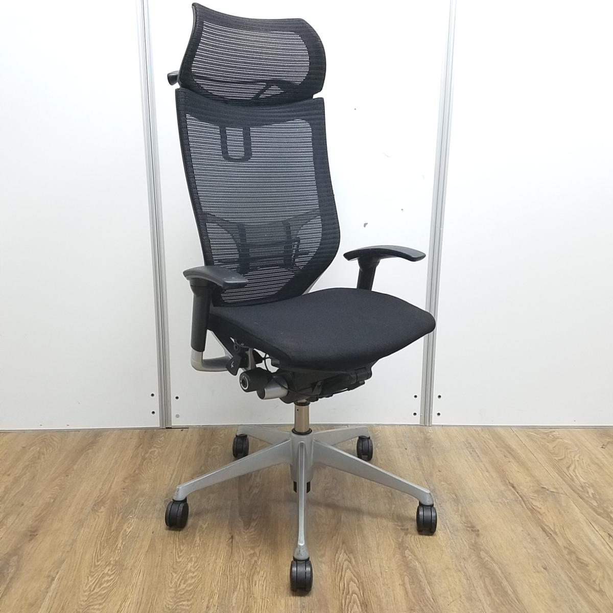 ★【訳あり品】【リクライニング不具合・上下昇降訳あり】オカムラ製 王道シリーズバロン ブラック アジャストアーム※可動肘 ヘッドレスト ランバーサポート コートハンガー 可動肘 シルバー脚 肘付きハイバックチェア!!※保障対象外品になります。- 京都東寺店