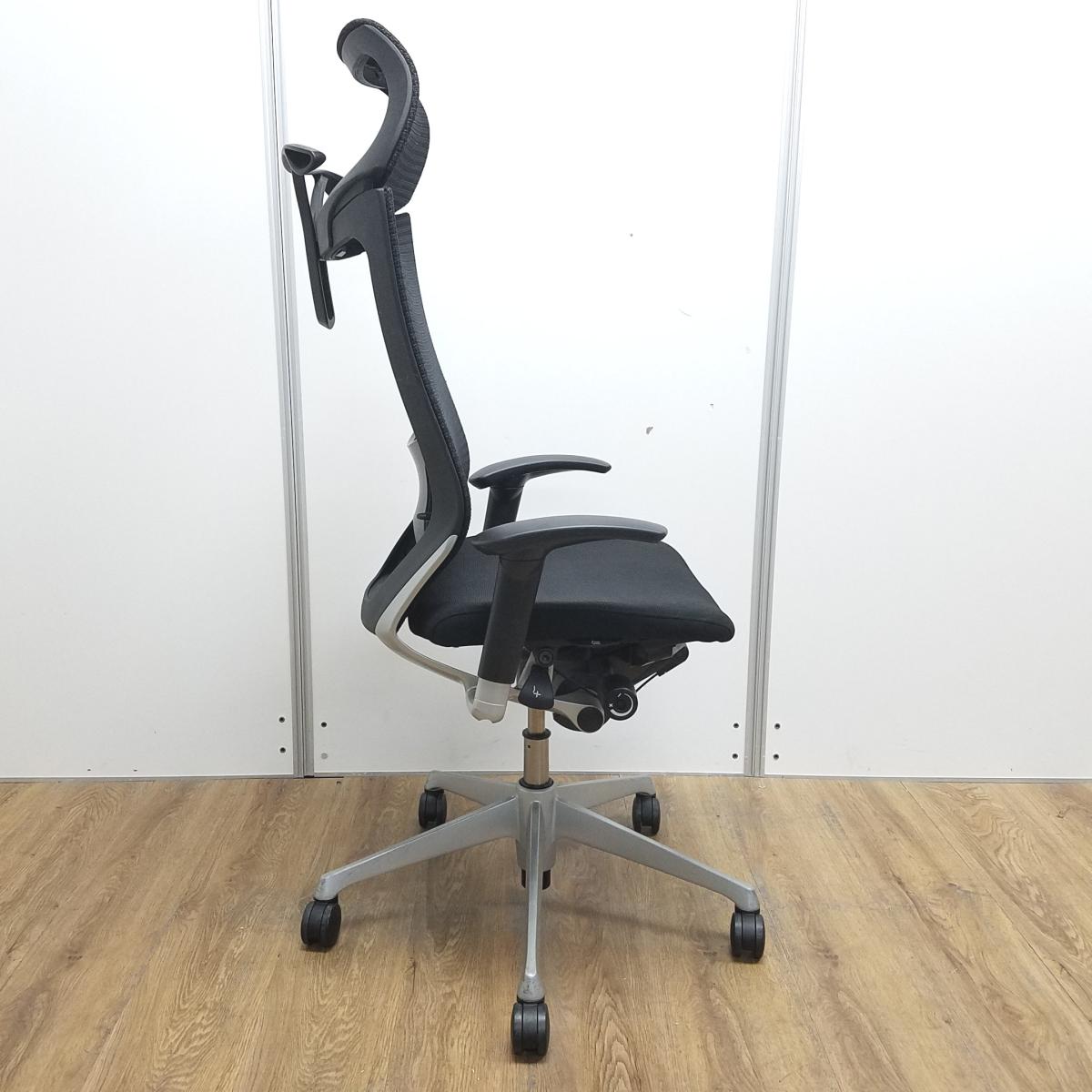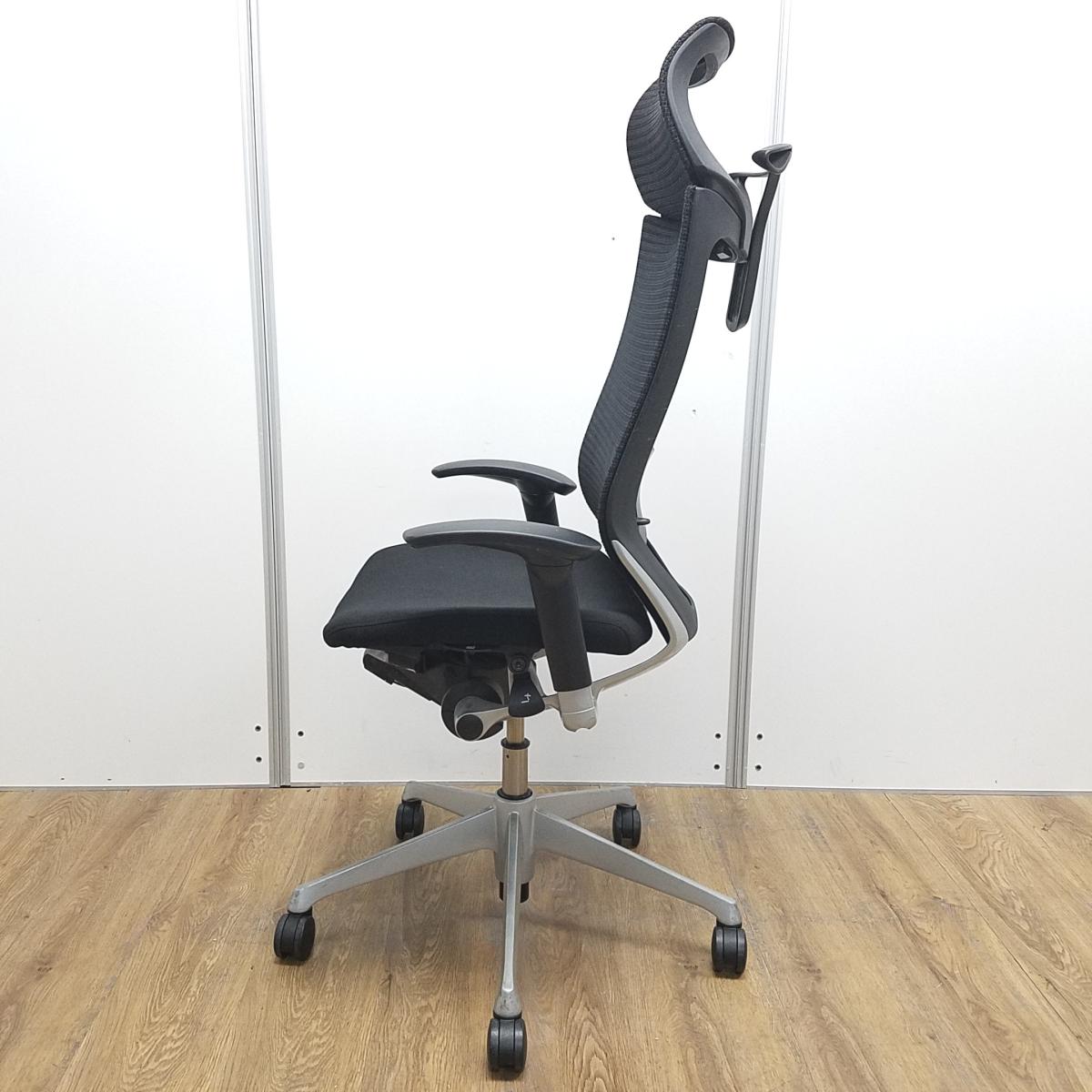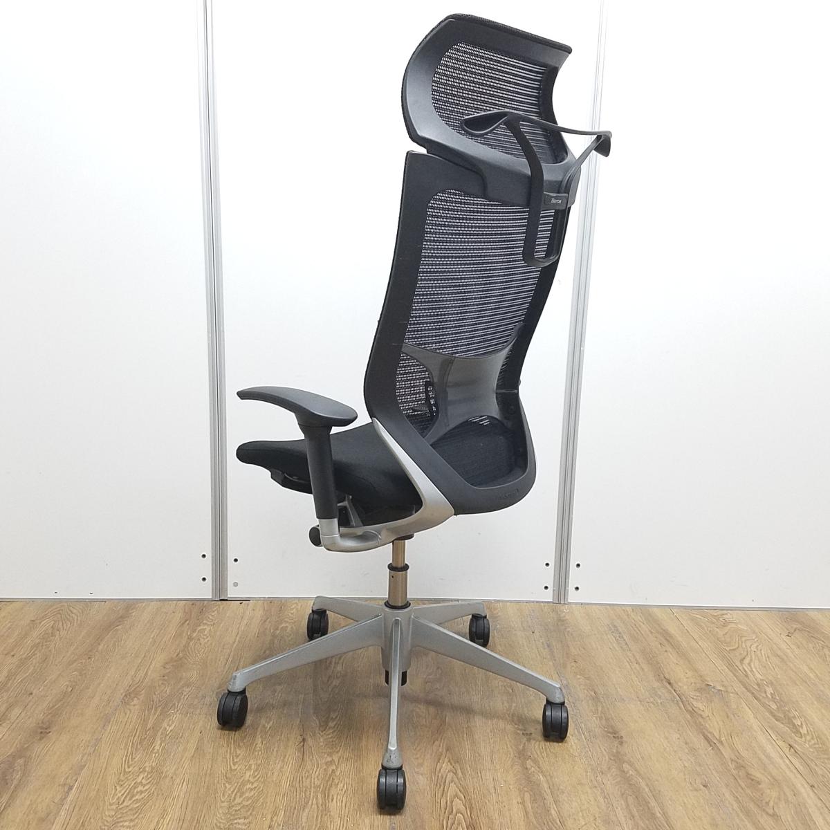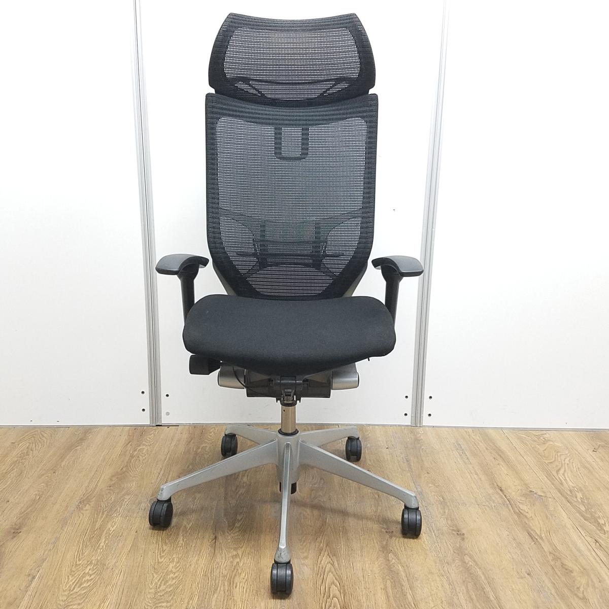 ★【訳あり品】【リクライニング不具合・上下昇降訳あり】オカムラ製 王道シリーズバロン ブラック アジャストアーム※可動肘 ヘッドレスト ランバーサポート コートハンガー 可動肘 シルバー脚 肘付きハイバックチェア!!※保障対象外品になります。- 京都東寺店
