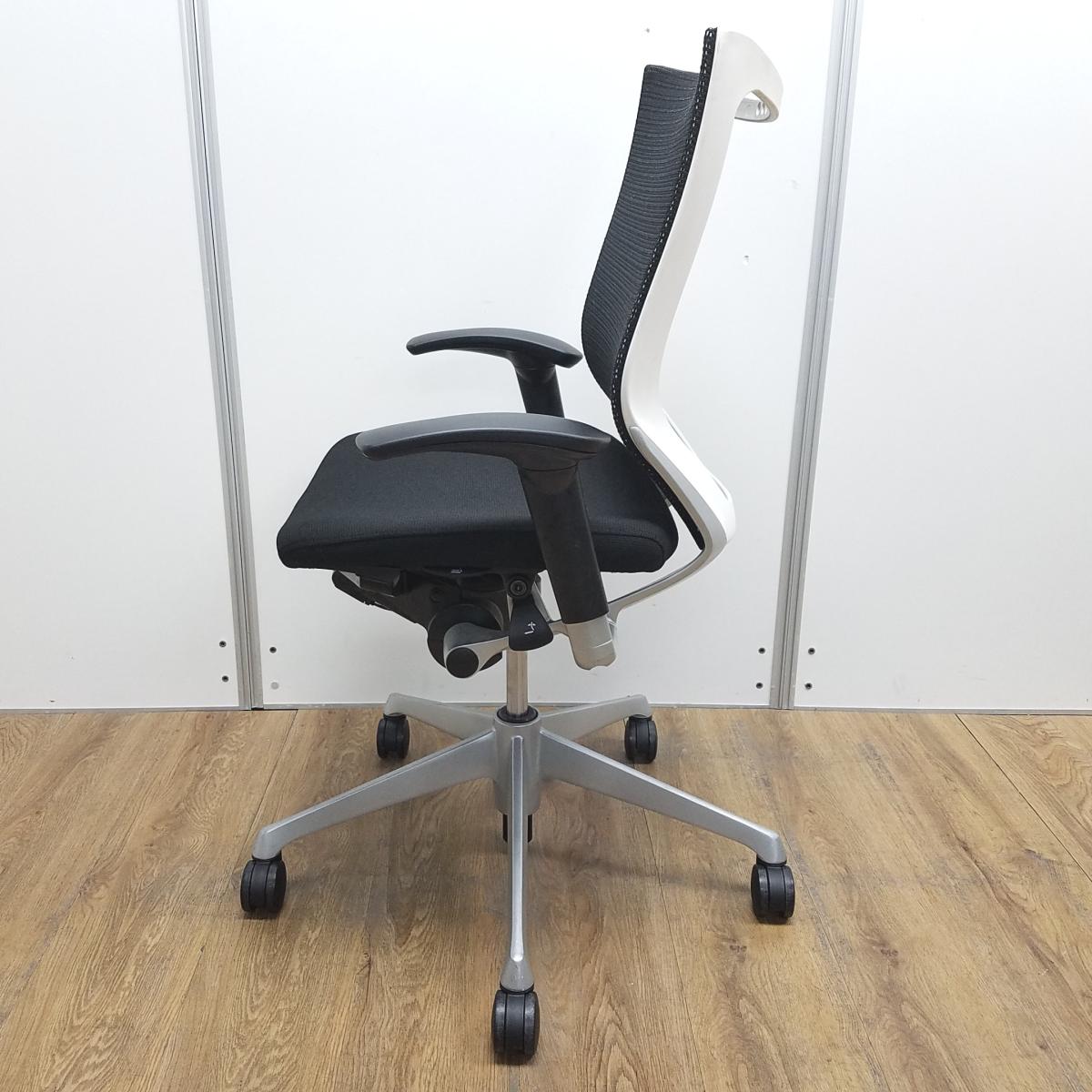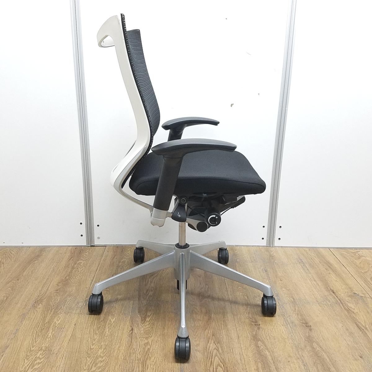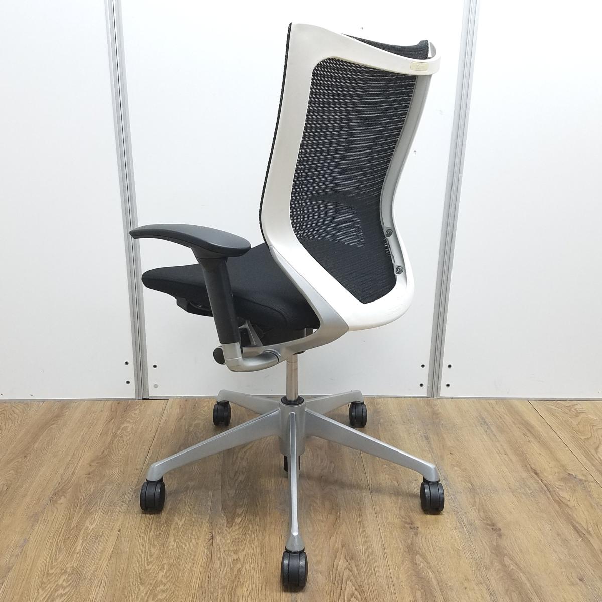 【国産メッシュチェアの代表格!オフィスの執務室、会議室におすすめ!】■オカムラ(okamura)製 バロン(Baron)チェア 肘付 ローバック 背面メッシュ ■固定肘 ■ブラック×ホワイトシェル【IB】