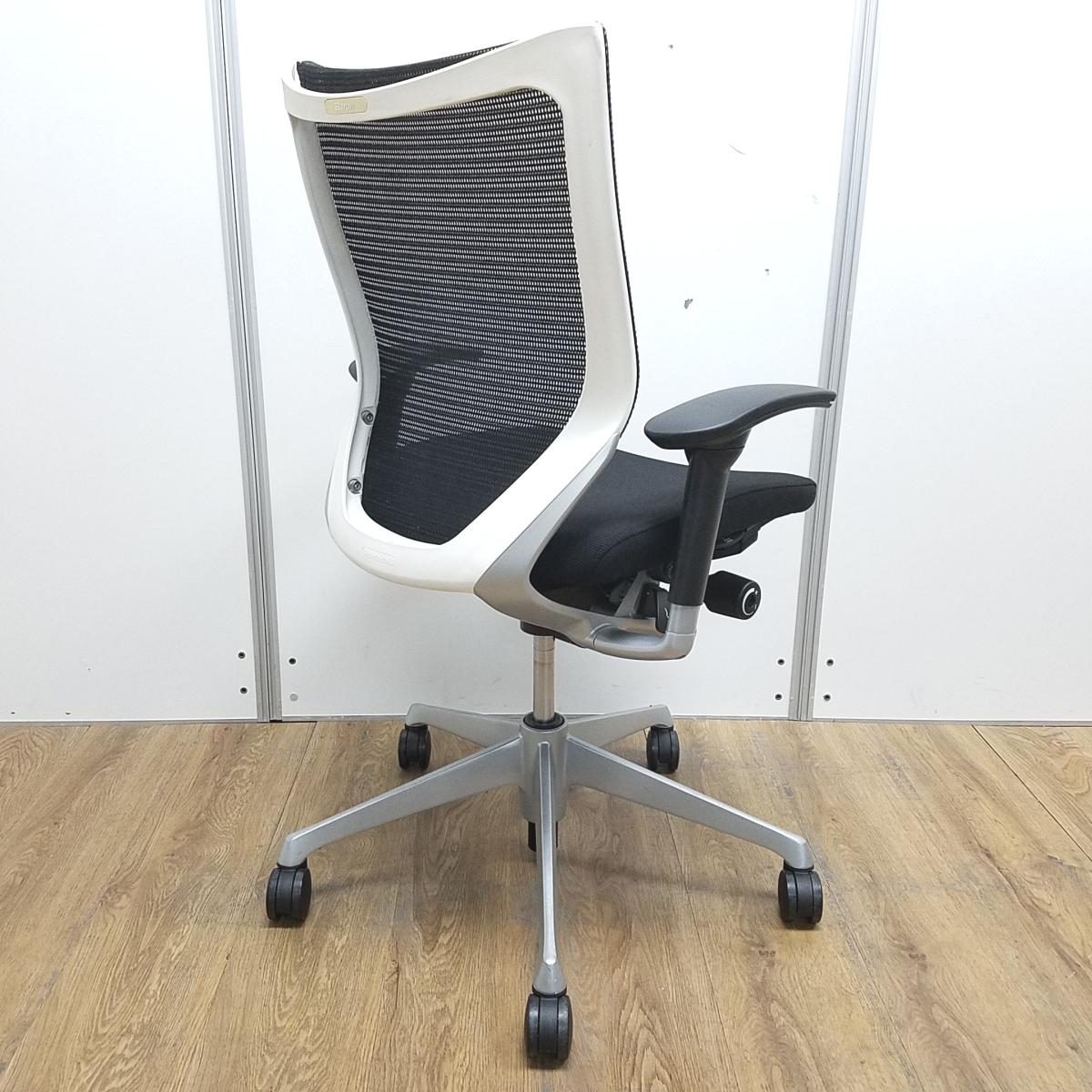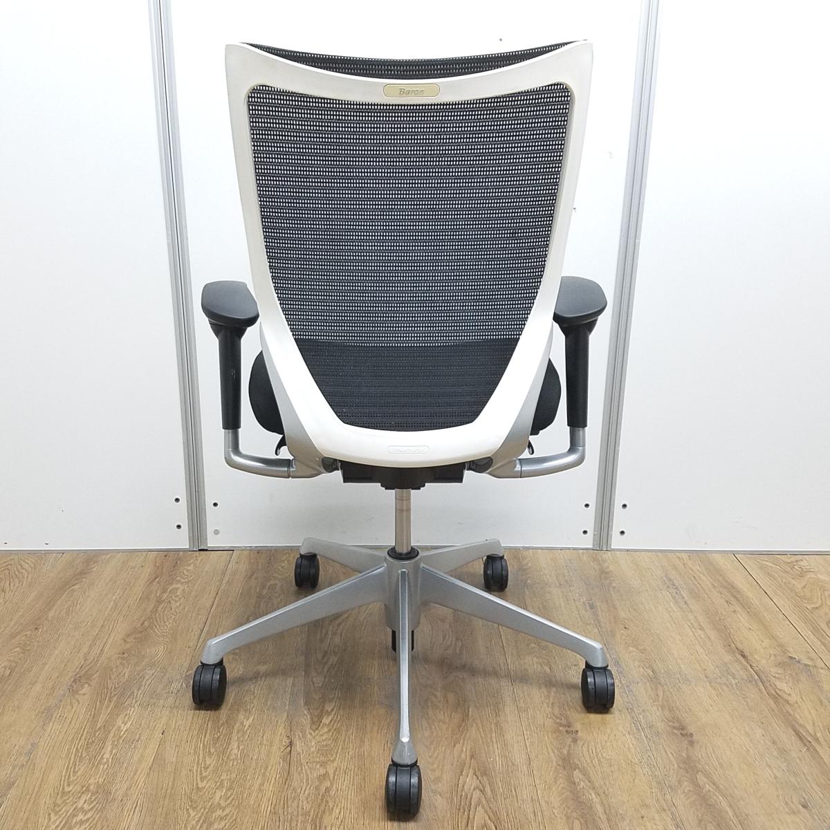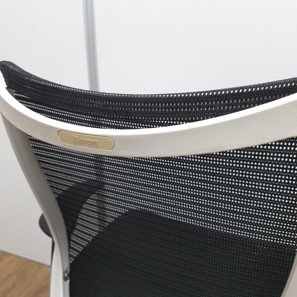【国産メッシュチェアの代表格!オフィスの執務室、会議室におすすめ!】■オカムラ(okamura)製 バロン(Baron)チェア 肘付 ローバック 背面メッシュ ■固定肘 ■ブラック×ホワイトシェル
