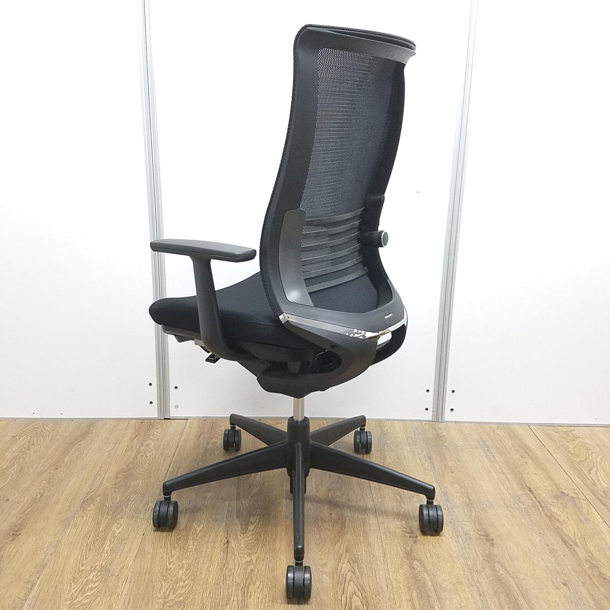 ★【T10】【T9】【商品入替のため、残り1脚限り】コクヨ製 ベゼルシリーズ ブラック ブラックフレーム 固定肘 ポリッシュ脚 テクスチャードメッシュ 肘付きハイバックチェア!!【管理番号:A01020592】