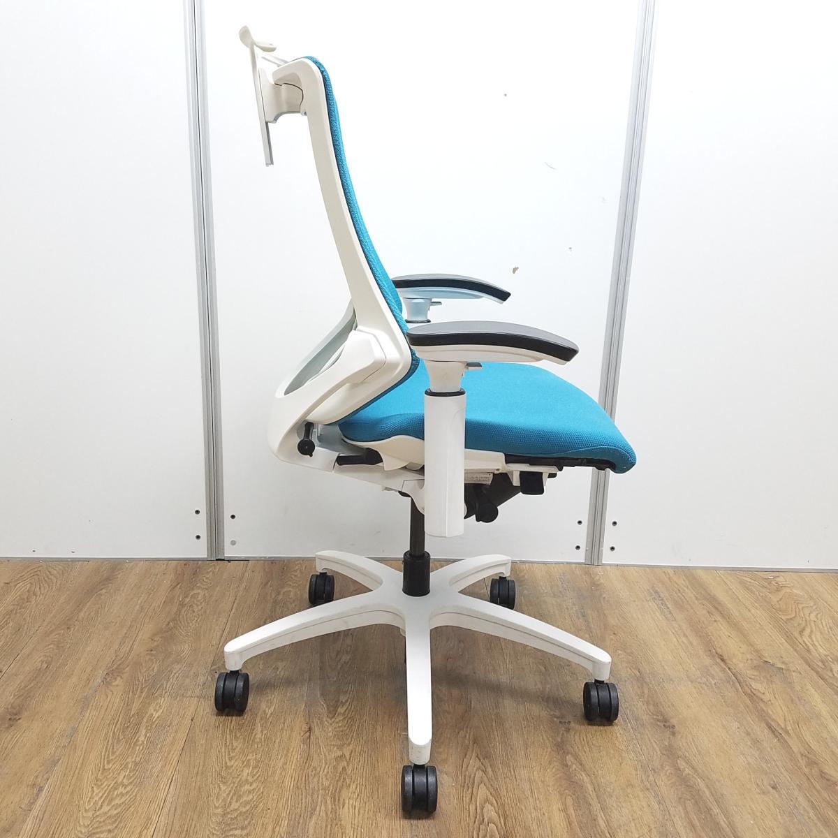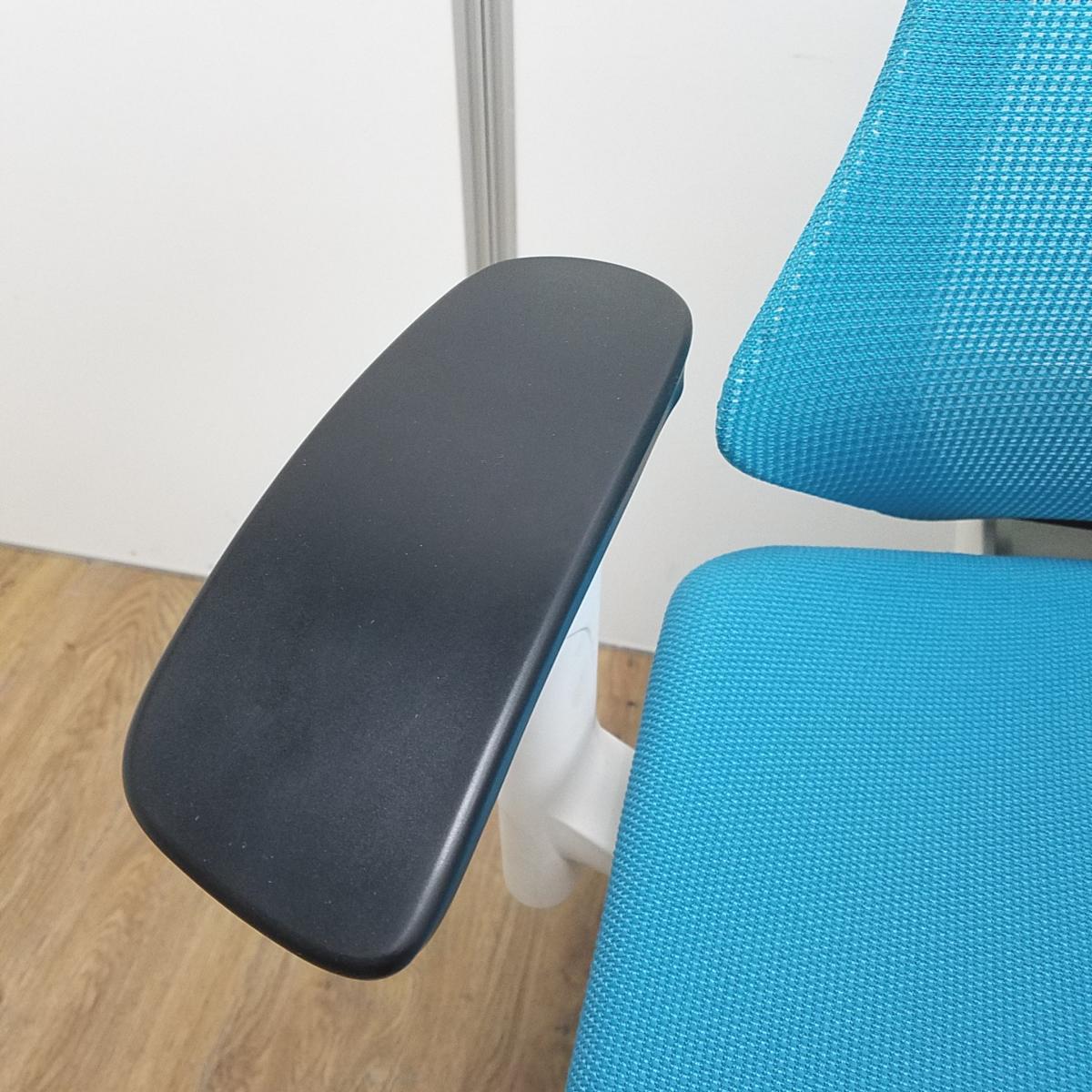 ★【訳あり品】【背もたれ破れ】イトーキ製 エフ(f) ストロングブルー ホワイトフレーム 肘付き ハイバック 背面メッシュ コートハンガー アジャスタブル※可動肘(新タイプ) 姿勢の変化にフレキシブルに対応! スタイリッシュで座り心地も抜群な高機能チェア! 肘付きハイバックチェア!!※訳あり商品のため、保障対象外品になります。在庫がある店舗一覧