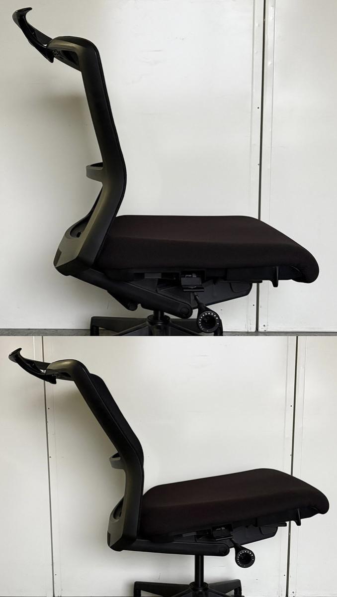 また、個人的にオススメなのは『フルアジャスタブル肘』というアーム部分が斜め前に伸びていくタイプの肘置きを搭載したモデルです。高さを上げれば上げるほどパッドが前方に迫り出していくので、デスクワークの際にちょうど肘を置きたい場所に肘置きがきます。これがとても快適なので、ぜひ一度お試しいただきたいです!*エルフィチェアの肘パーツはフルアジャスタブル肘の他に、固定肘、アジャスタブル肘などがあります。
