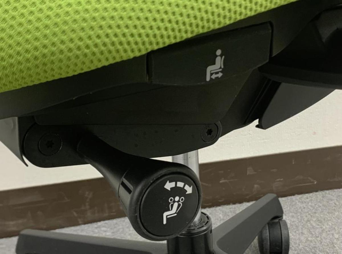 - 座面右下のダイヤル操作で、リクライニングの強弱調整が行えます。これまでのダイヤル式よりも、少ない回転数で、最弱?最強の調整が可能です。