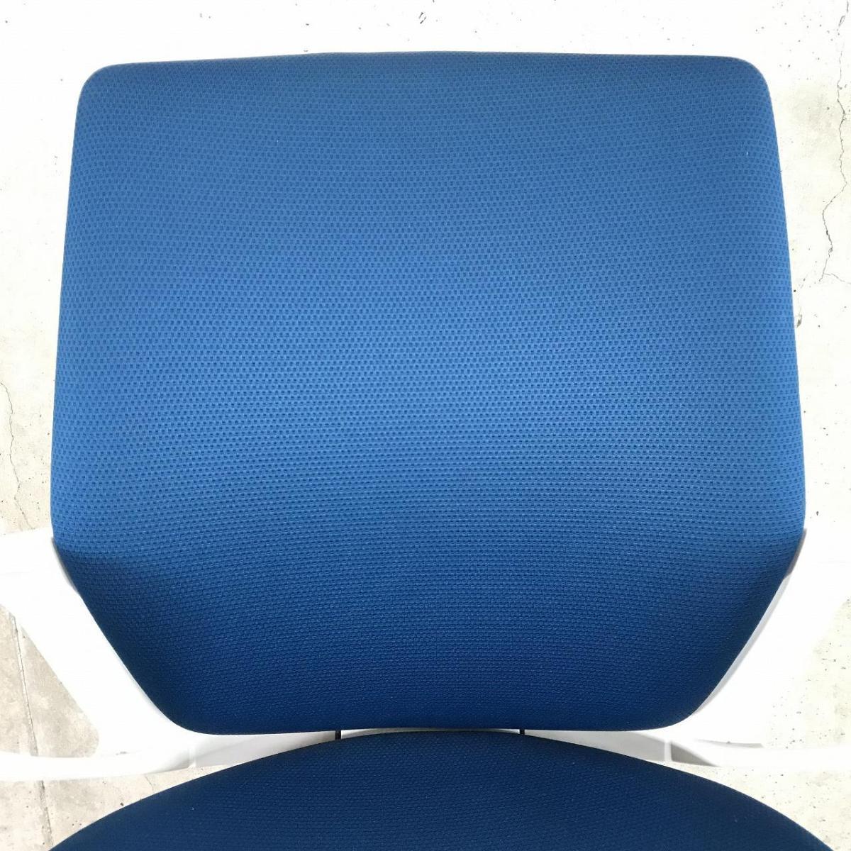 【デスクにスッキリ収納できるコンパクト設計!スマートデザインで使い勝手抜群!】■コクヨ(KOKUYO)製 ピコラ(picora)チェア 肘付き ローバック ■サークル肘 ■プルシアンブルー×ホワイトシェル×脚ブラック※背面日焼け有