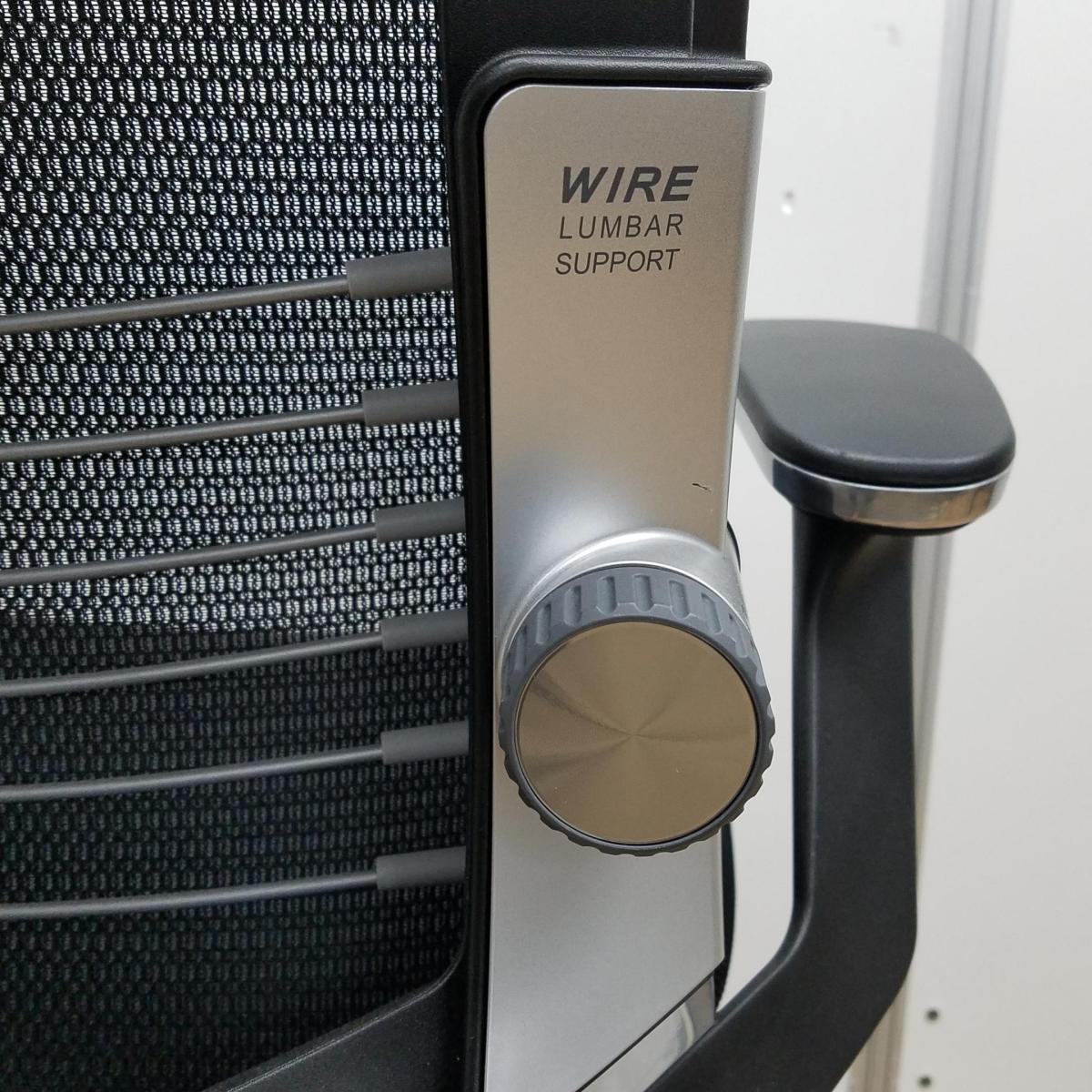 背面部分に付属しているランバーサポートは、6本のワイヤーで構成されており