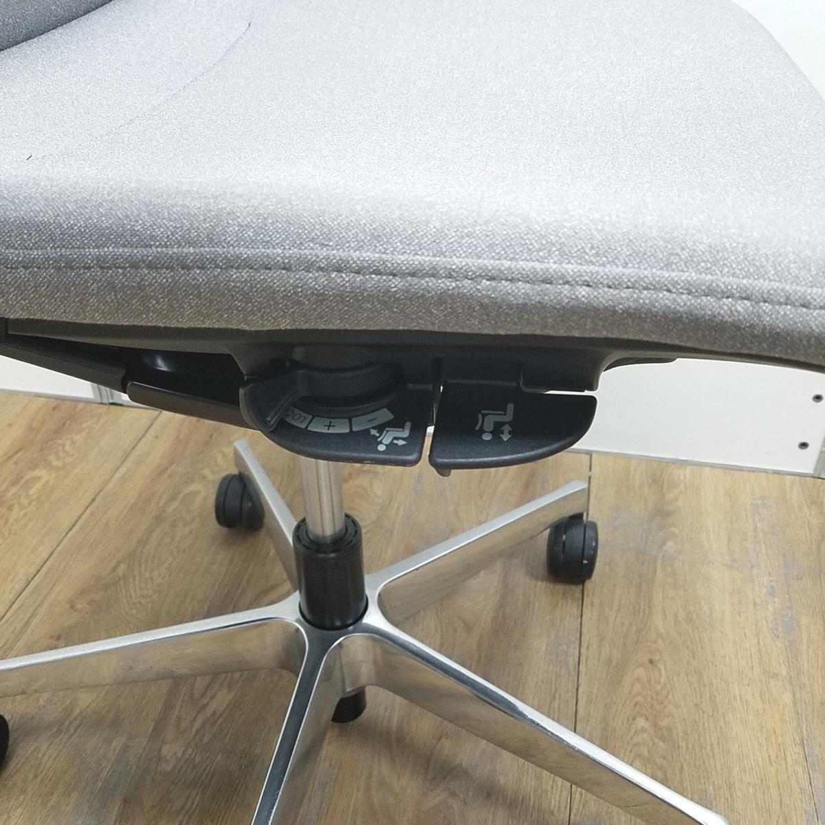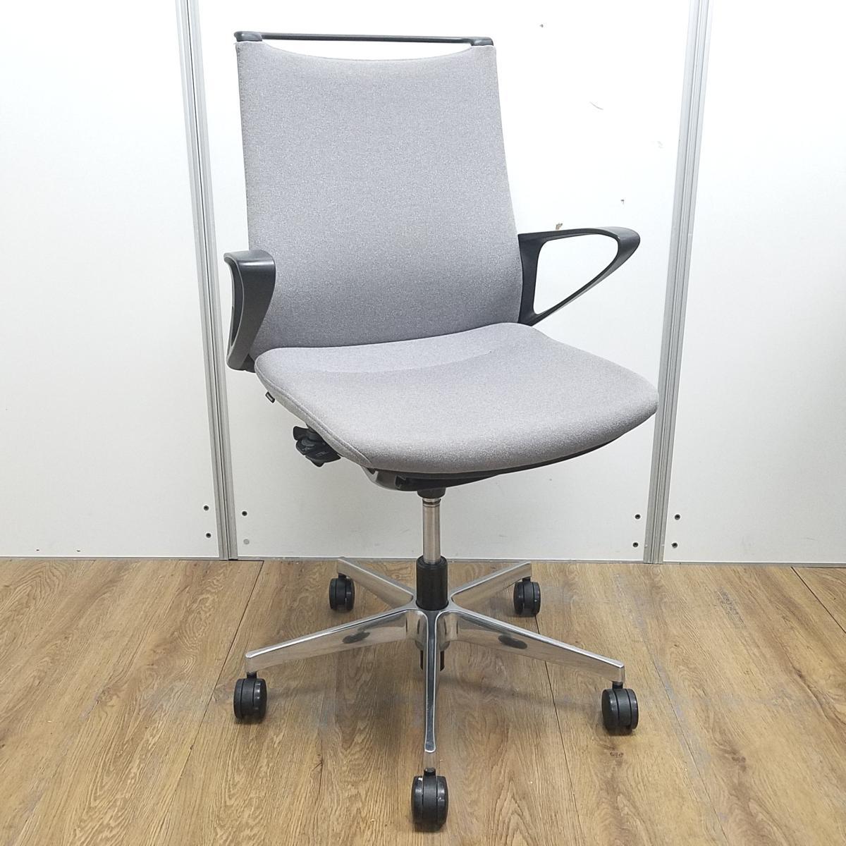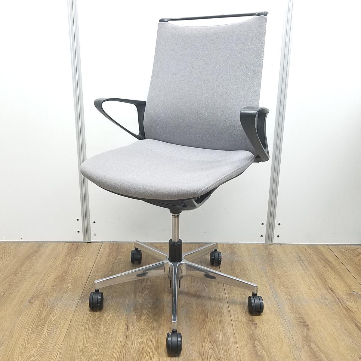 オカムラ製 モードシリーズ ライトグレー クロスバックタイプ サークル肘 スタイリッシュさが人気のオフィスチェア! インナーメッシュ構造による優しく包み込む座り心地! 肘付きミドルバックチェア!! オフィスバスターズ東大阪店 【W】- 東大阪店