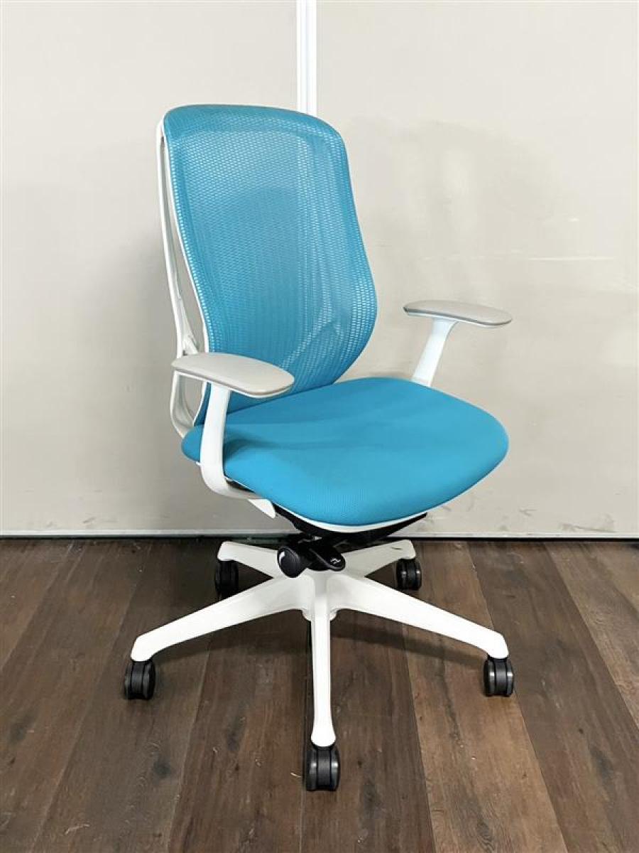 《現物写真だから安心!》オカムラ製の人気オフィスチェア【シルフィーメッシュ/可動肘/ヘッドレスト付き/ブルーグリーン】が先着1名様ご案内可能です!