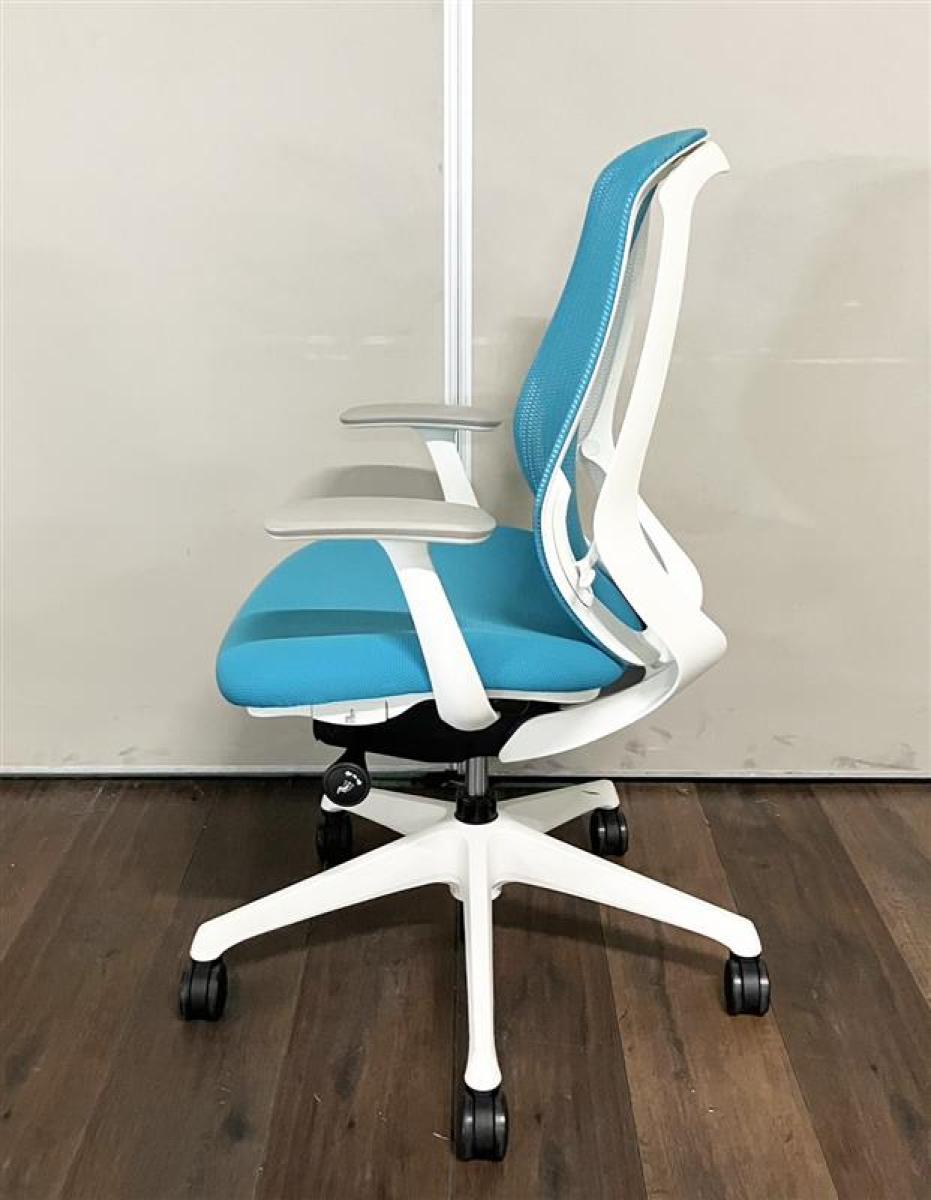 【今人気のワークチェア!】働く姿勢を変えるオフィスチェアが入荷!前傾機能付きの新感覚のオフィスシーティング!包み込まれるような快適な座り心地! ■オカムラ/シルフィーチェア/ブルーグリーン コートハンガー付