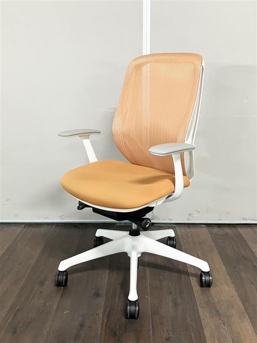 【背のカーブを変えられる新感覚のオフィスシーティング!】■オカムラ シルフィーチェア 可動肘付 オレンジ ハンガー付 ホワイトフレーム ■新感覚のオフィスシーティング!【Okamrua Sylphy】