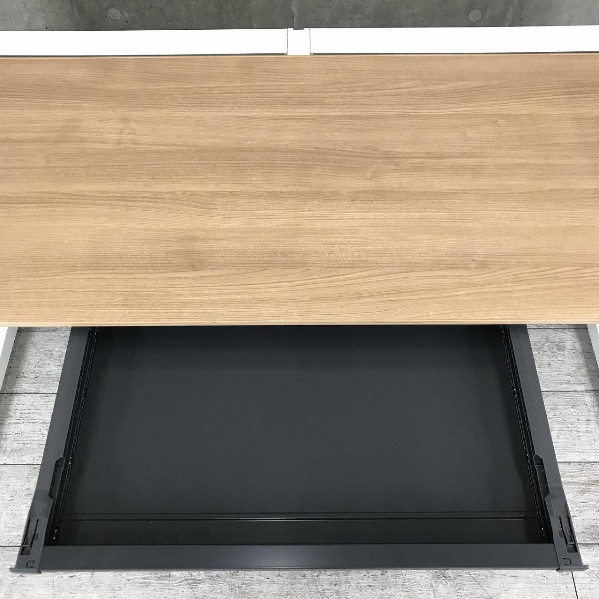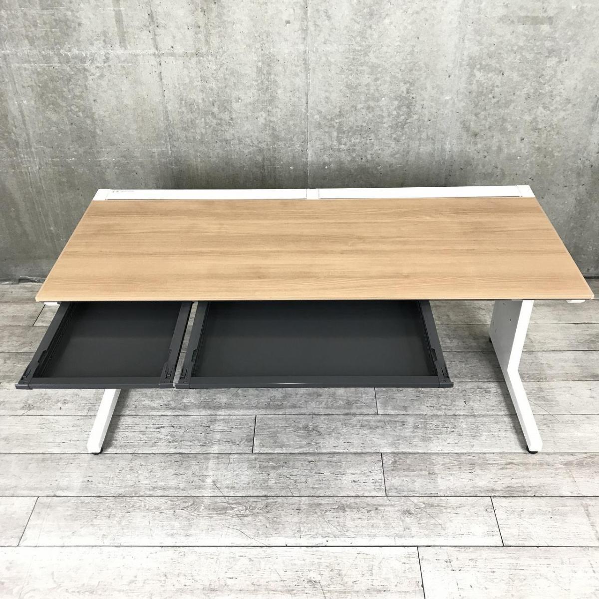 【定価約13万円】【幅1600㎜!ワークスペースを広く取りたい方にお勧め!】■コクヨ(KOKUYO)製 iSデスクシリーズ 平机 引き出し付き ※右側の引き出し無し ■W1600×D700×H720㎜ ■木目調ナチュラル天板 × ホワイト- 茨城南店