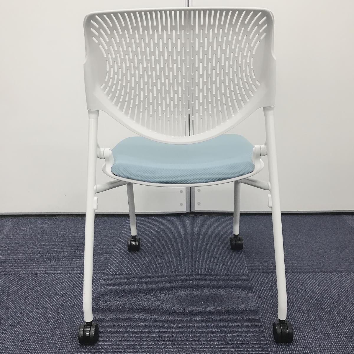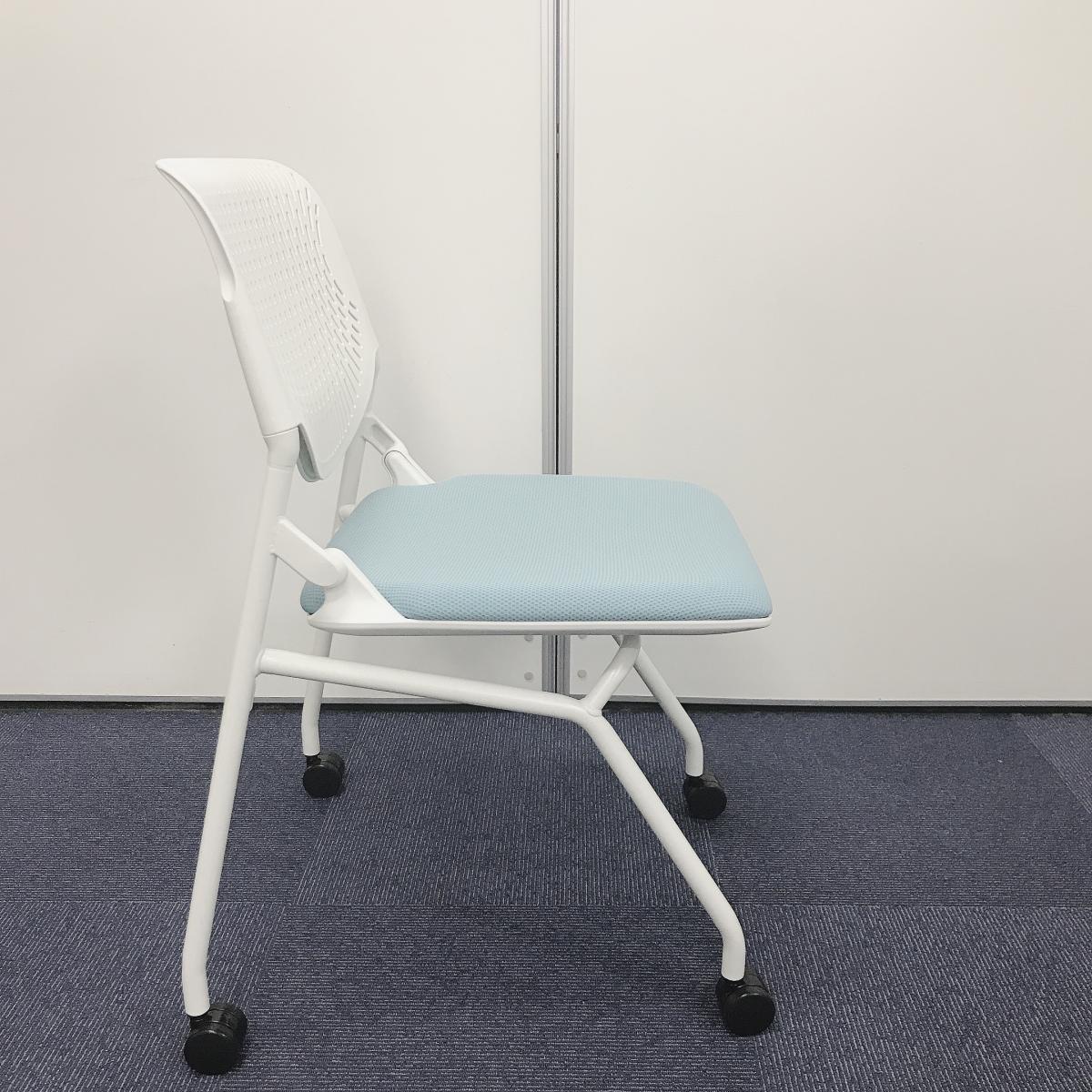 【在庫入替セール】オカムラ ルナ ネスティングチェア 背パッド付 セージ(ライトブルー)×ホワイトフレーム 会議用・打ち合わせ用に最適のデザイン性高いチェア