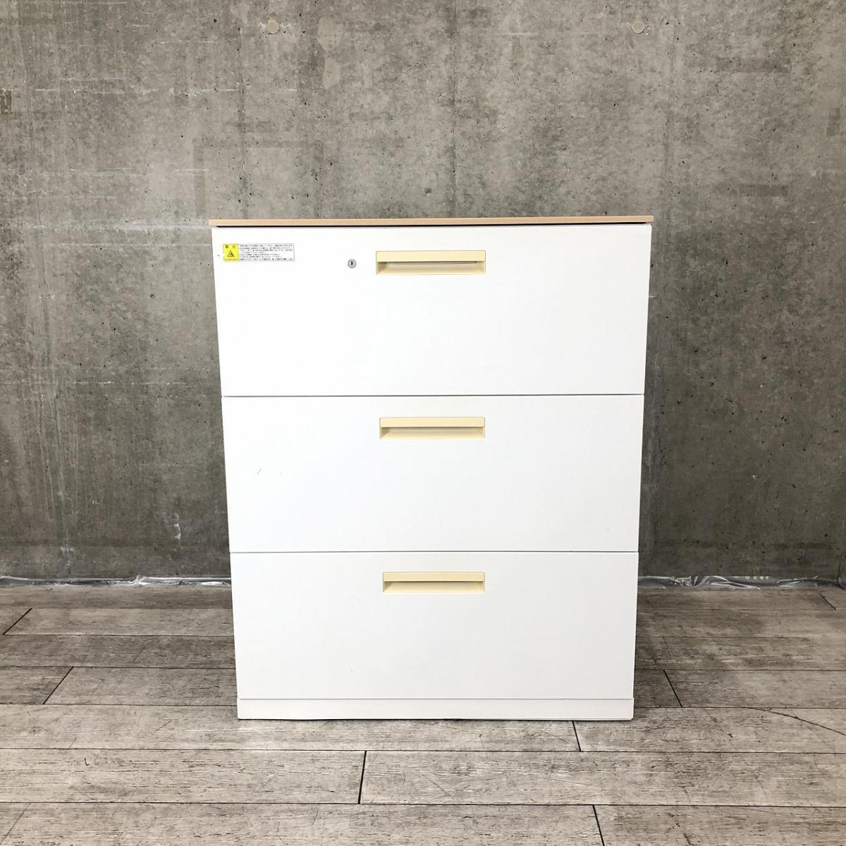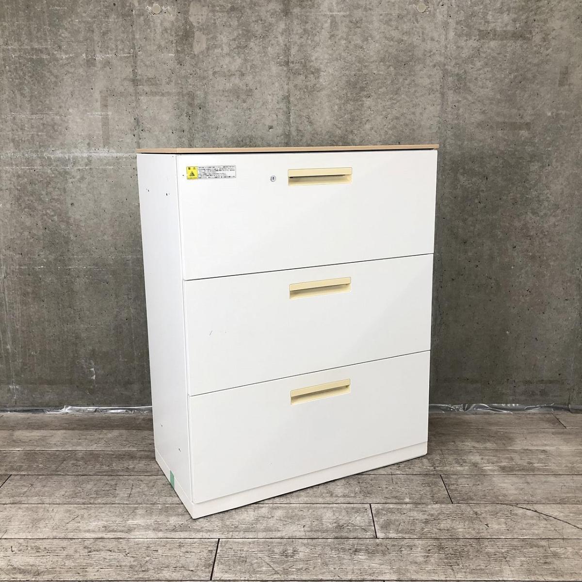 【書類を一気に収納!大型取っ手で開け閉めしやすい!】■ウチダ(UCHIDA)製 ハイパーストレージ(HS)シリーズ 3段ラテラル書庫 ローキャビネット ■ホワイト/天板:ナチュラル ■シリンダー錠 ※日焼け・キズあり【弊社使用欄:A01041700】【SN】- 渋谷サテライト