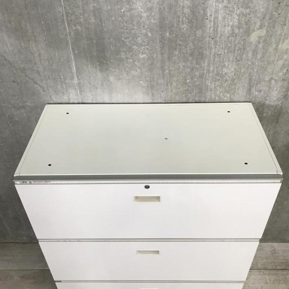 【A4ファイルも沢山収納可能!ホワイトカラーの人気シリーズ3段ラテラル書庫!】/オススメ(おすすめ) /人気商品【弊社使用欄:A01013834】3段ラテラル書庫/ローキャビネット/天板付き/ホワイト/シリンダー錠/ITOKI/THIN LINE■イトーキ/シンライン※取っ手部分日焼あり