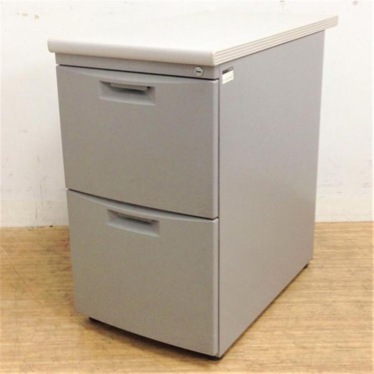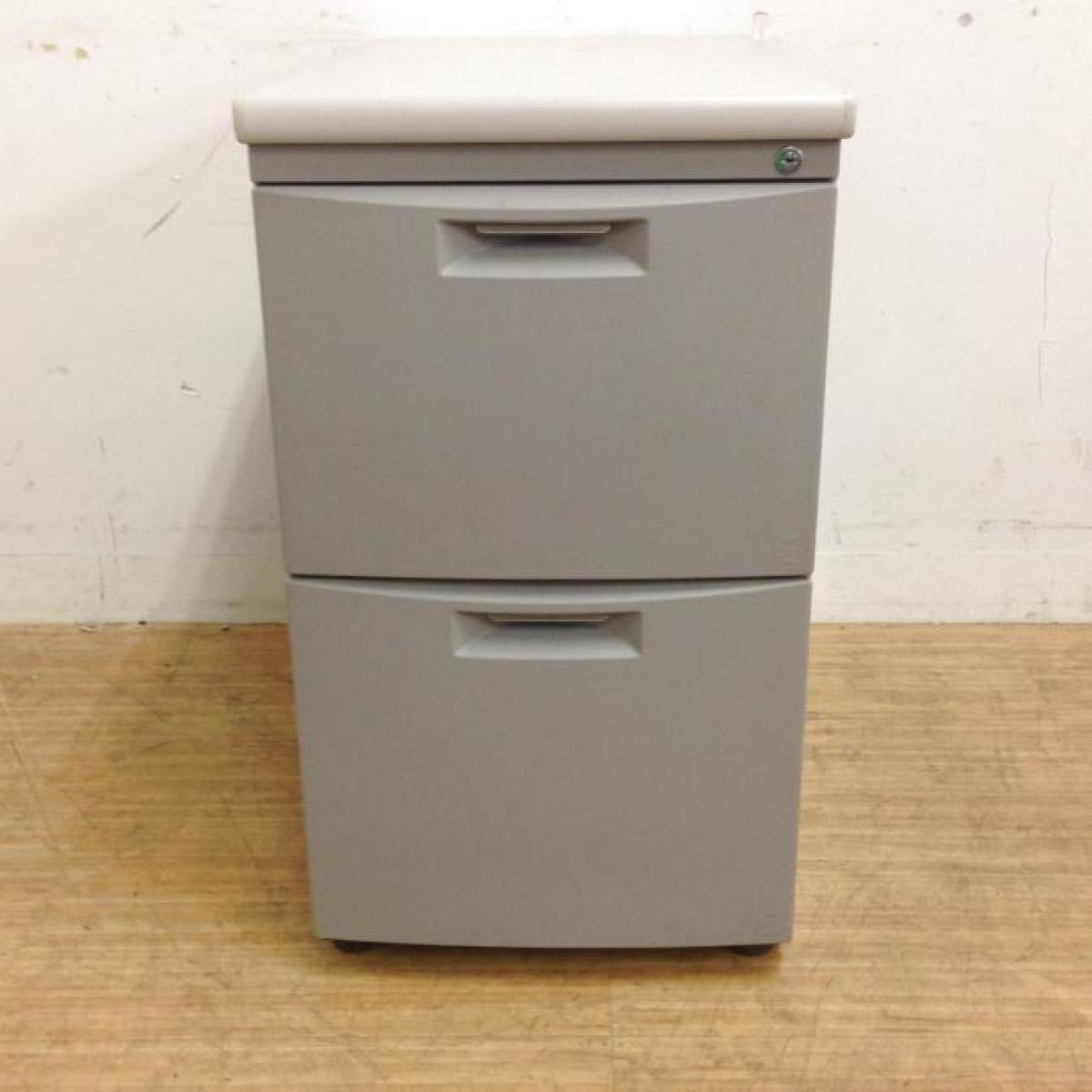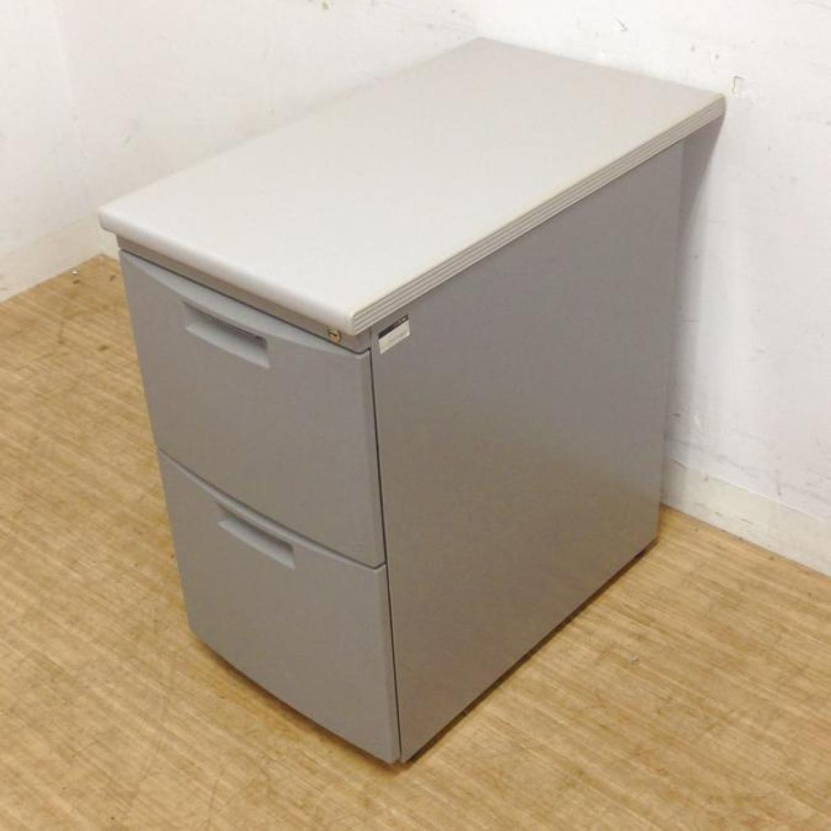 イトーキ CZシリーズ 2段脇机 鍵付き シリンダー錠 グレー デスク横に置いて作業スペースの拡張を ※樹脂部分に日焼け若干あり- 名古屋千種店