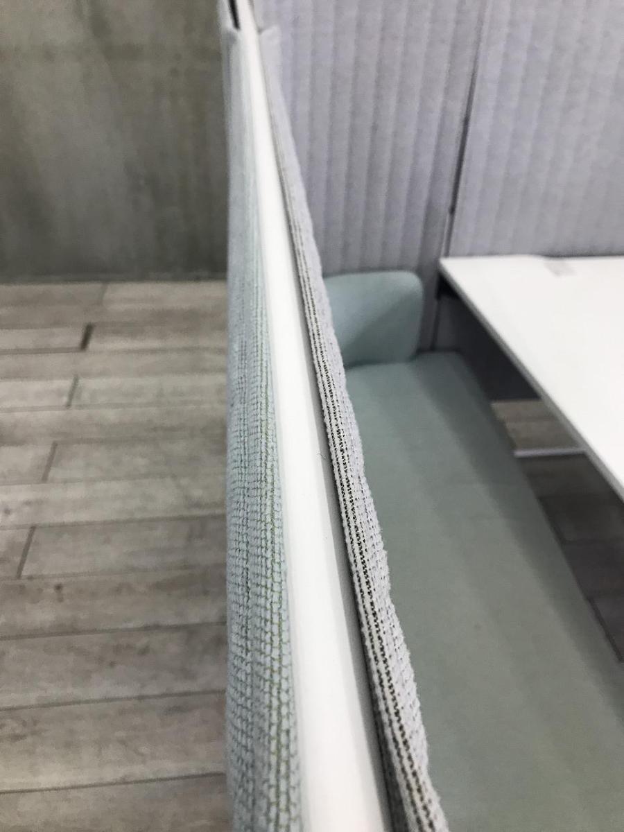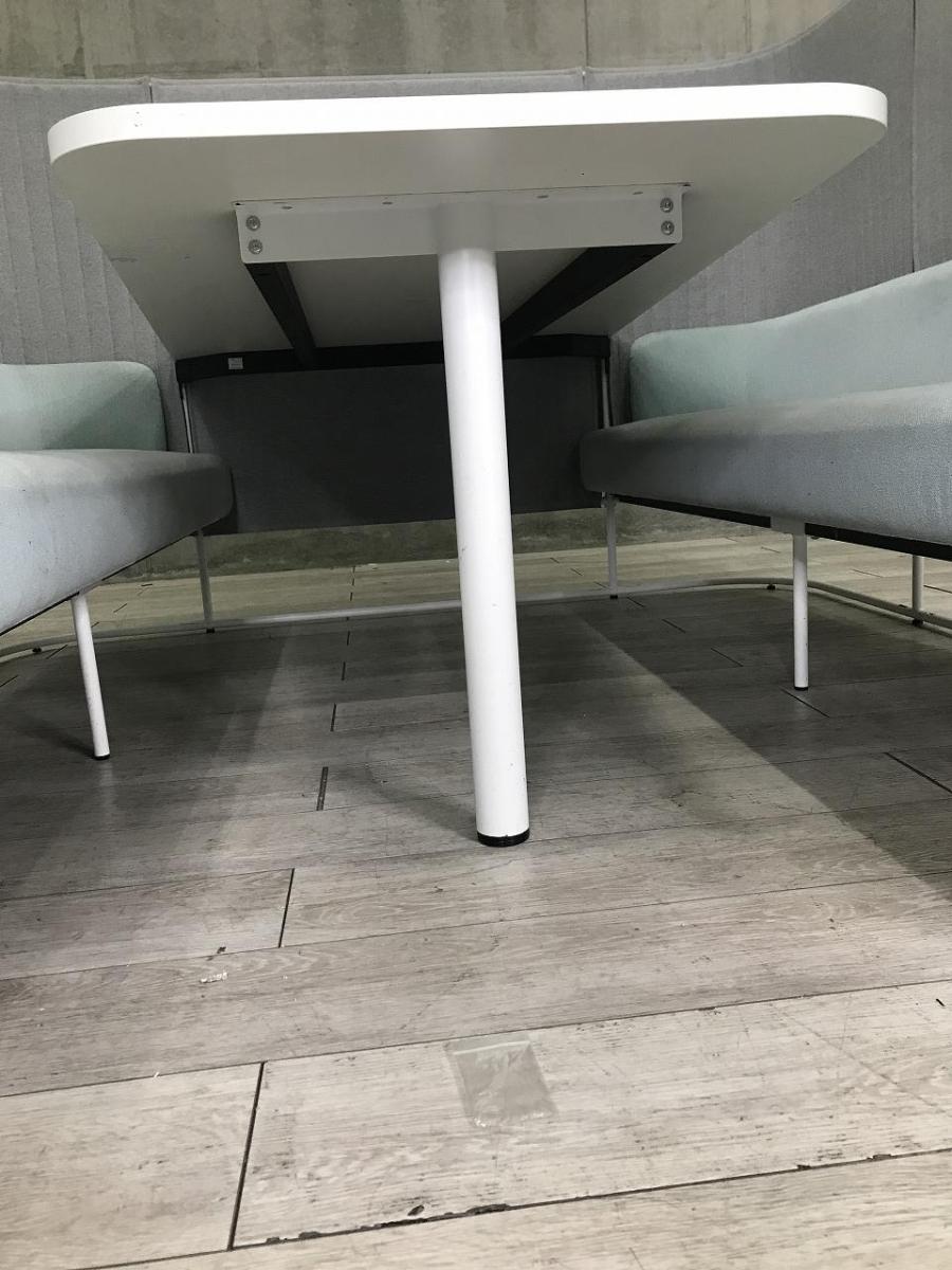 【壁やパーテーションで完全に仕切らずにゆったりと囲った6人用のセミクローズド空間!】■コクヨ(KOKUYO)製 インフレームシリーズ 6人用ファミレスブース仕様 ■外側・ソファー/ ライトブルー × 内側/ ライトグレー × ホワイト脚 ■天板 ホワイト 【ABW商材】【関東倉庫在庫品】【弊社使用欄:A01042931】- 全店共通商品