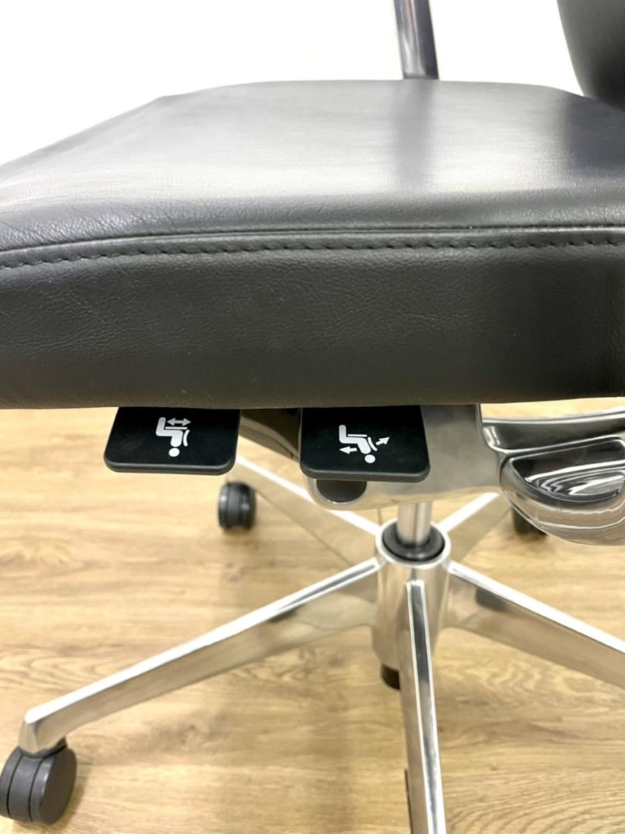座面の高さや前後などの基本的な調整レバーが座面裏の前方に集約されており、姿勢を変えずに調節ができます。