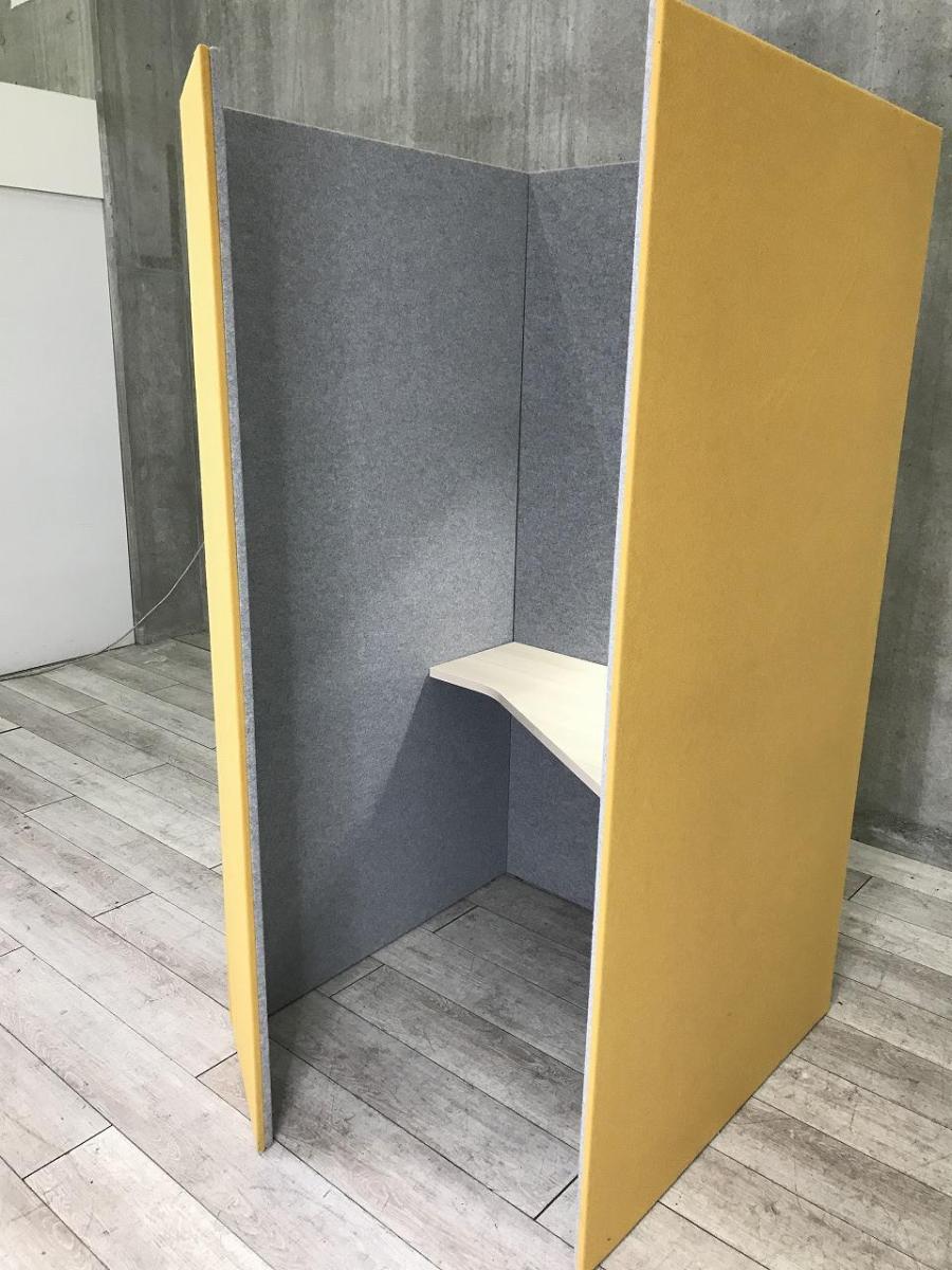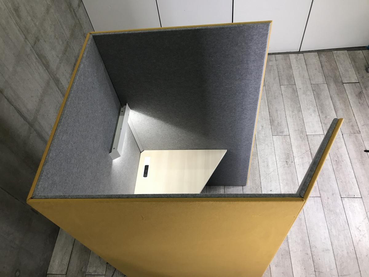 【右開口】【ワーカーの集中を高める省スペースなワークブースが入荷!】■オカムラ(okamura)製 ドレープシリーズ(テトラタイプ) 集中ワークブース (W1000/D1200/H1920) ■照明付き ■イエロー(内側 グレー)【ABW商材】【関東倉庫在庫品】【弊社使用欄:A01043012】- 全店共通商品