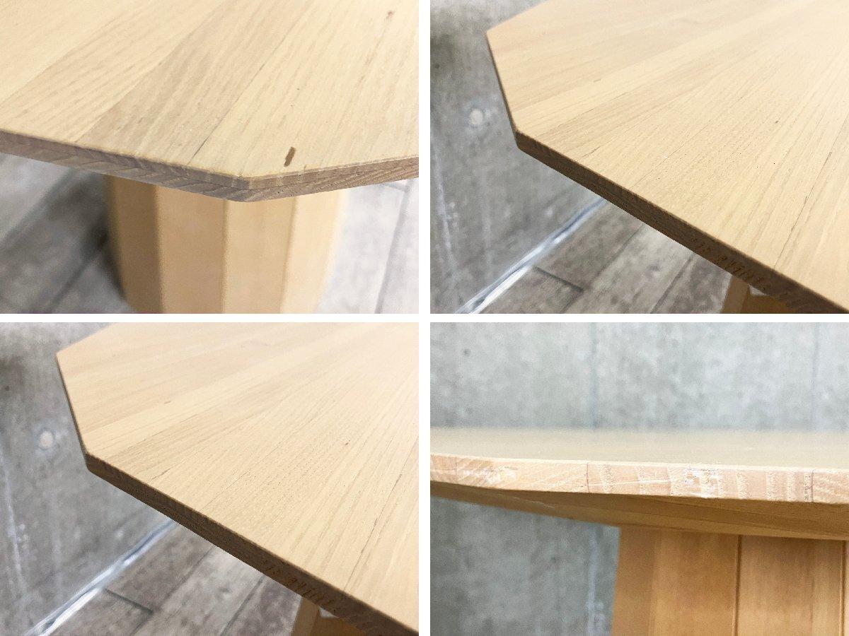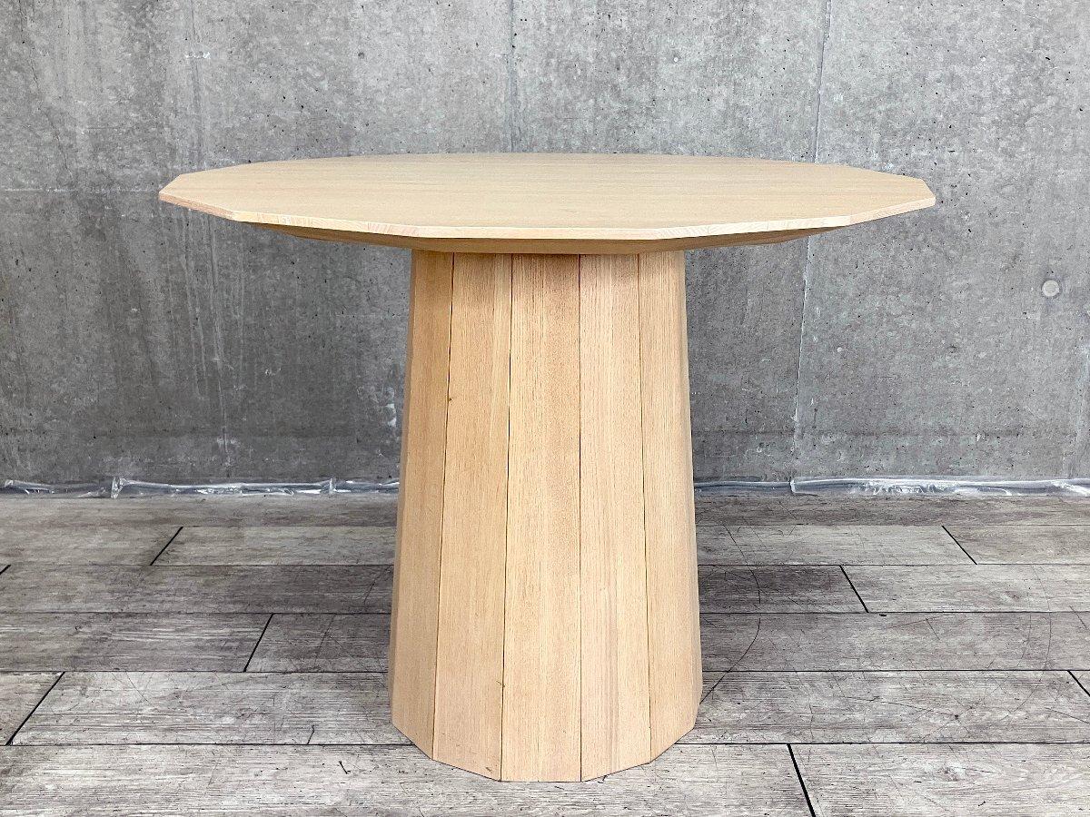 特徴的な多角形の天板と、独特な樽形状のベースでコンテンポラリーなデザインに構成されており、さまざまなライフシーンに溶け込むダイニングテーブルです。