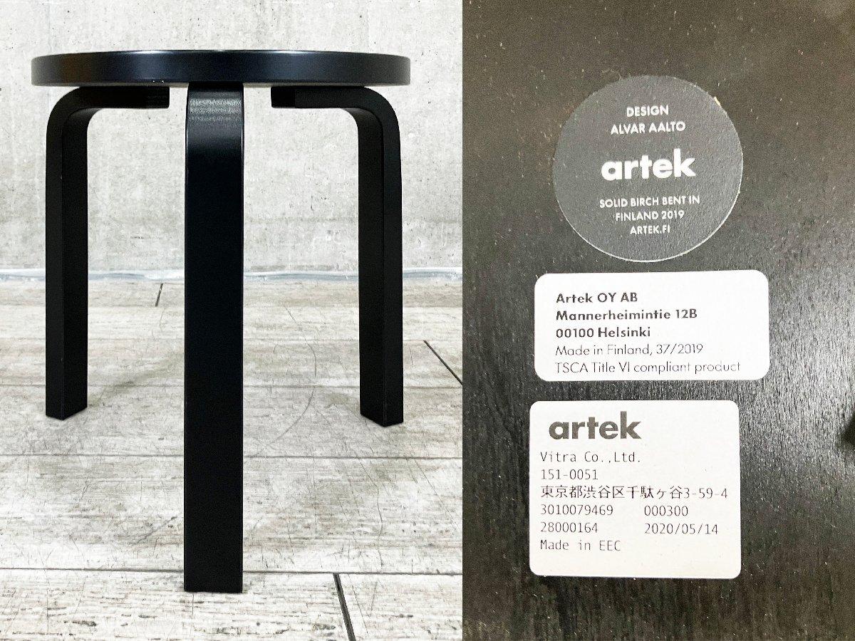 artek/アルテック スツール60 アルヴァ・アールト 北欧 フィンランド 3本足 ブラックラッカー- デザイナーズ家具センター