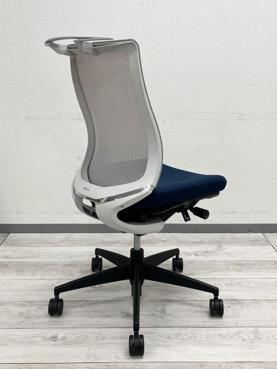 【前傾から後傾まで様々な姿勢をサポート!ワンランク上の座り心地!】■コクヨ(KOKUYO)製 ベゼル(Bezel)チェア 肘無し ハイバック モデレートタイプ 背面メッシュ ■プルシアンブルー×ホワイトシェル×脚ブラック ■ハンガー付- 千葉店