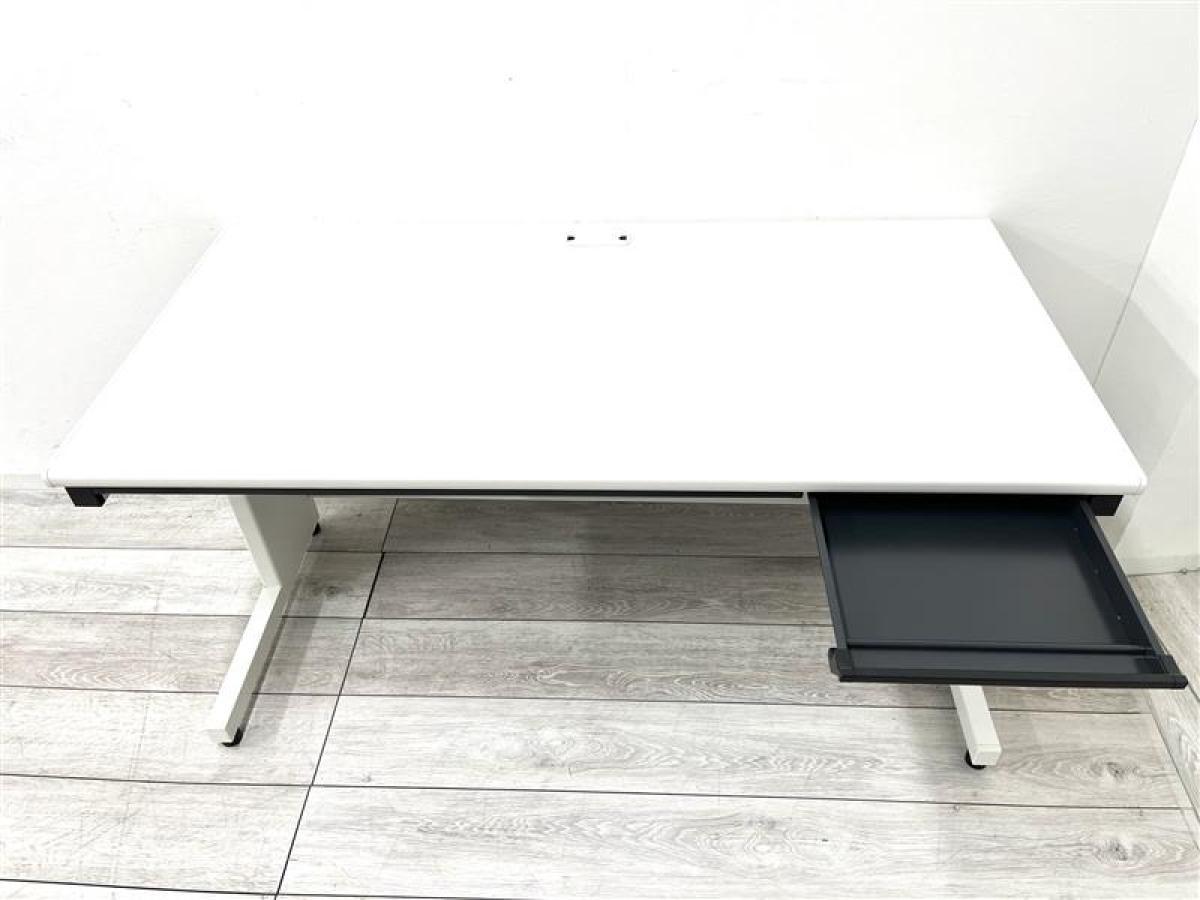 【T9】【商品入替のため、残り1台限り】プラス製 フラットラインシリーズ ホワイト 珍しいブラックフレーム ホワイト天板とブラック脚のコントラストがオシャレ! 広々使えるW1400サイズ W1400平机!!