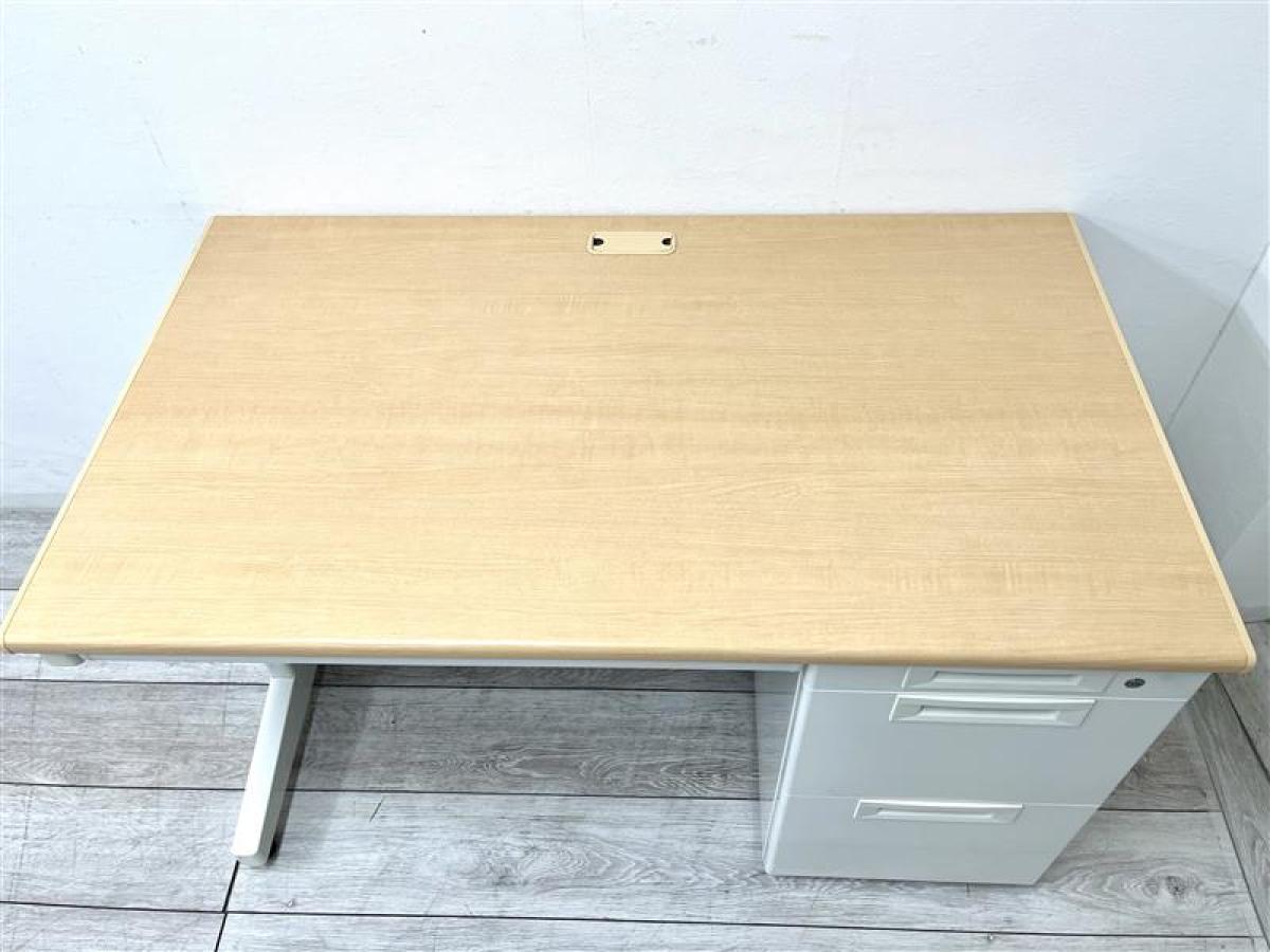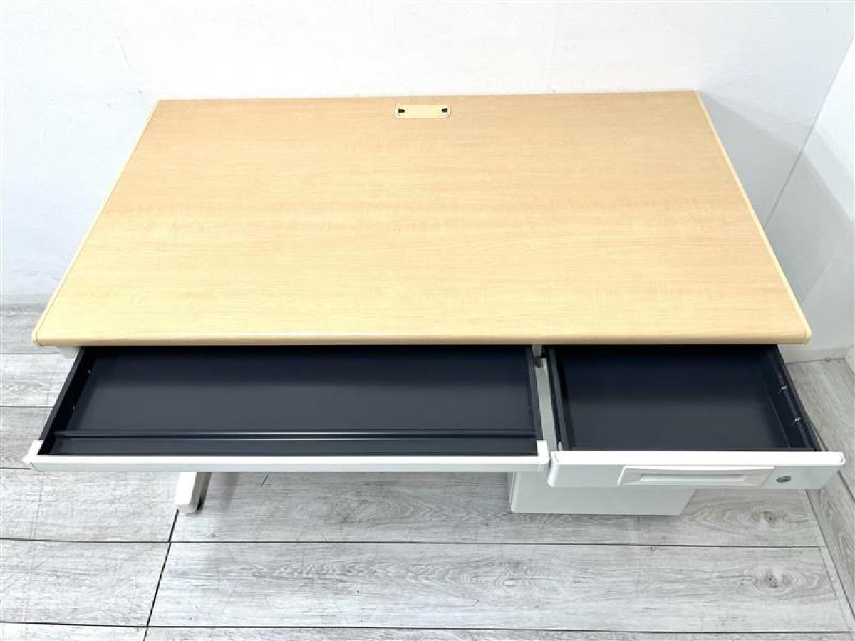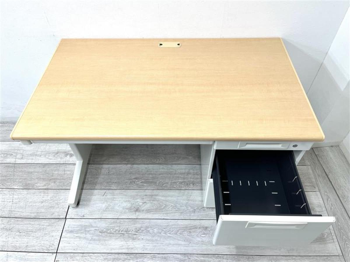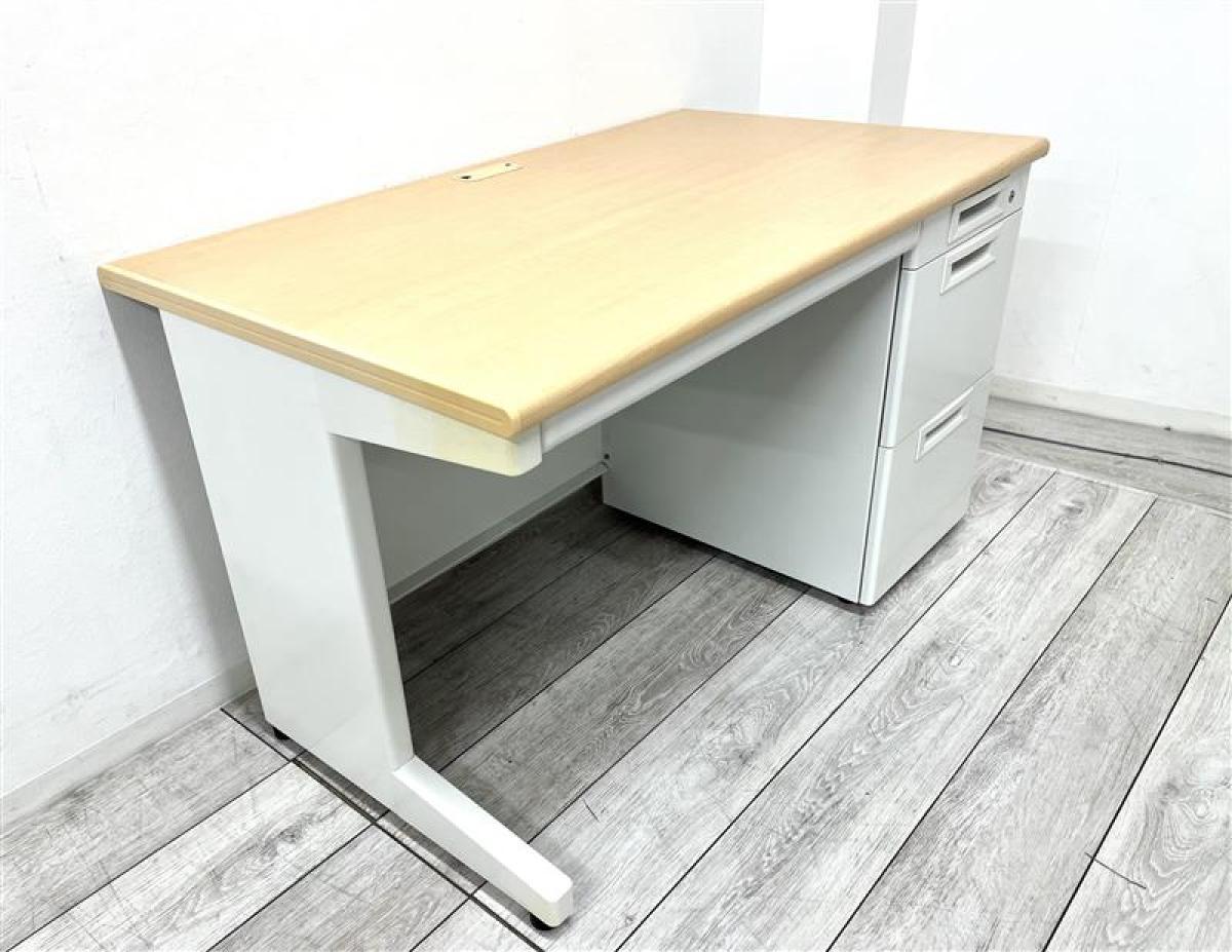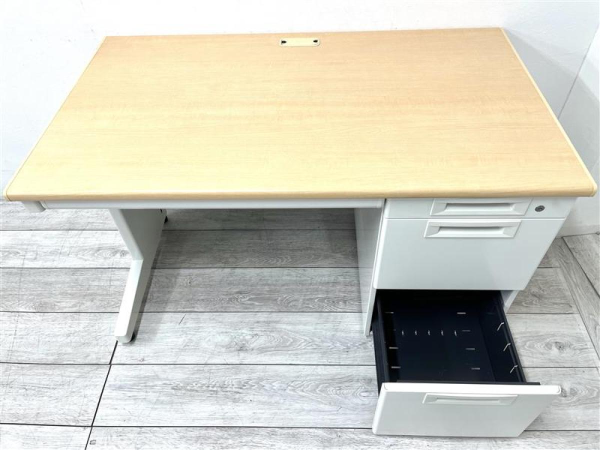 【在庫セール品】【定価約4万円】【オフィスで定番の幅1200㎜サイズの片袖机】■プラス/フラットライン ■片袖机 ■ナチュラル ■シリンダー錠- 仙台店