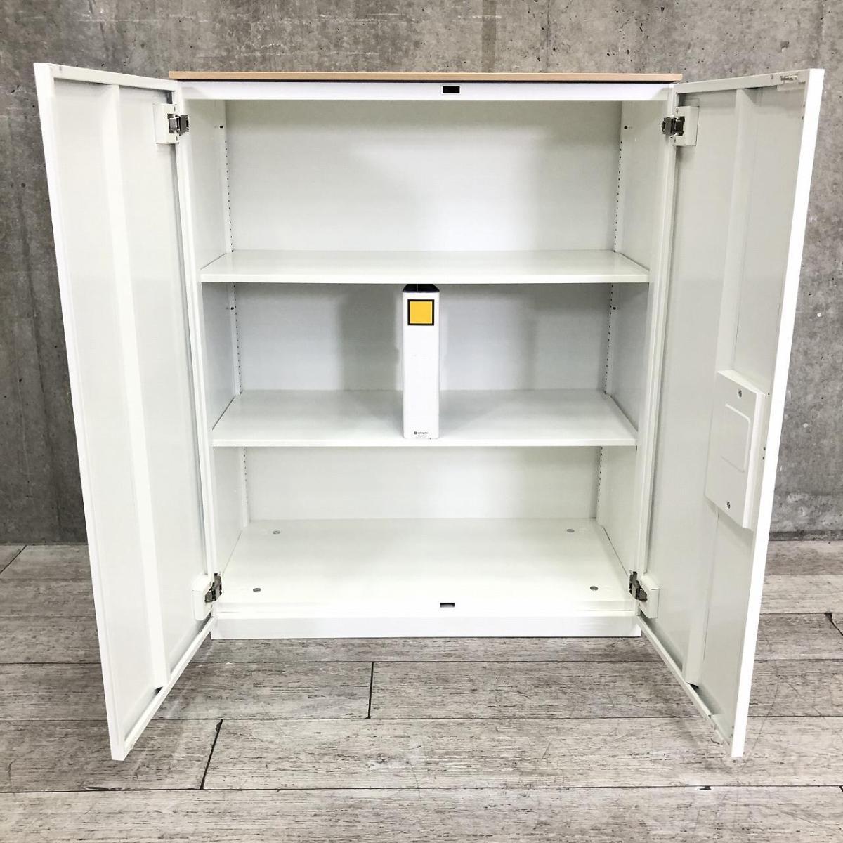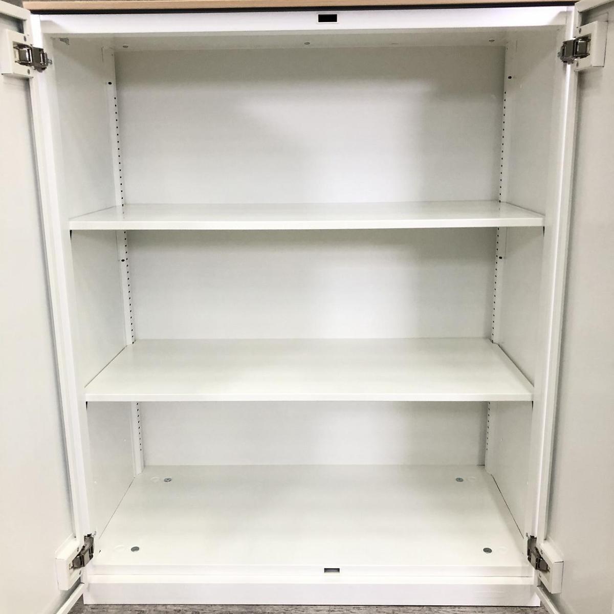 定番サイズ オカムラ/レクトラインシリーズ カラー:ネオホワイト 両開き書庫 鍵付き シリンダー錠 天板無し