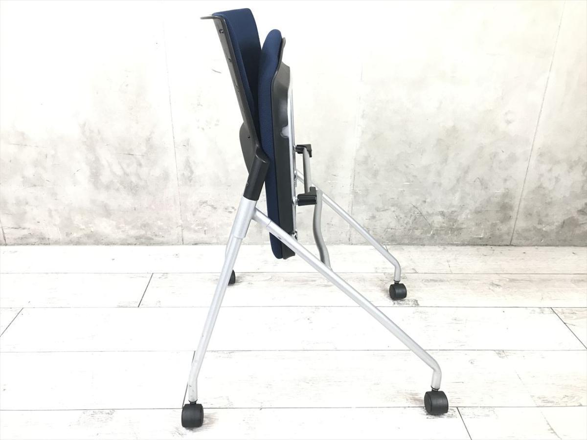 【在庫入替セール品!】【セミナーや会議用にオススメ!平行ネスティングで省スペース化!】/オススメ(おすすめ) /人気商品【弊社使用欄:】■背パッド付 キャスター付き ■ネイビーブルー/イトーキ製 マノス ネスティングチェア- 池袋店