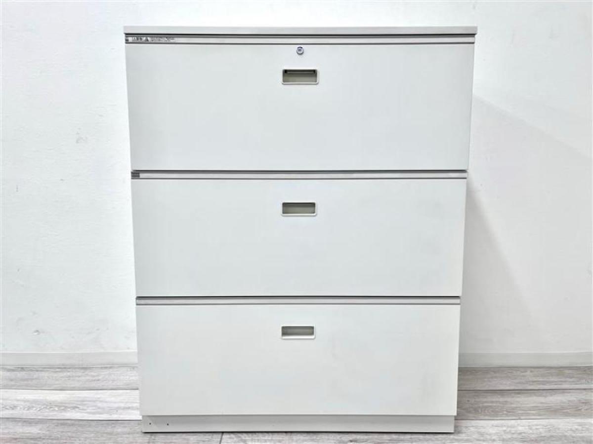 ■イトーキ(ITOKI)製 シンライン (THIN LINE) 3段ラテラル書庫 ローキャビネット ■ホワイト ■シリンダー錠