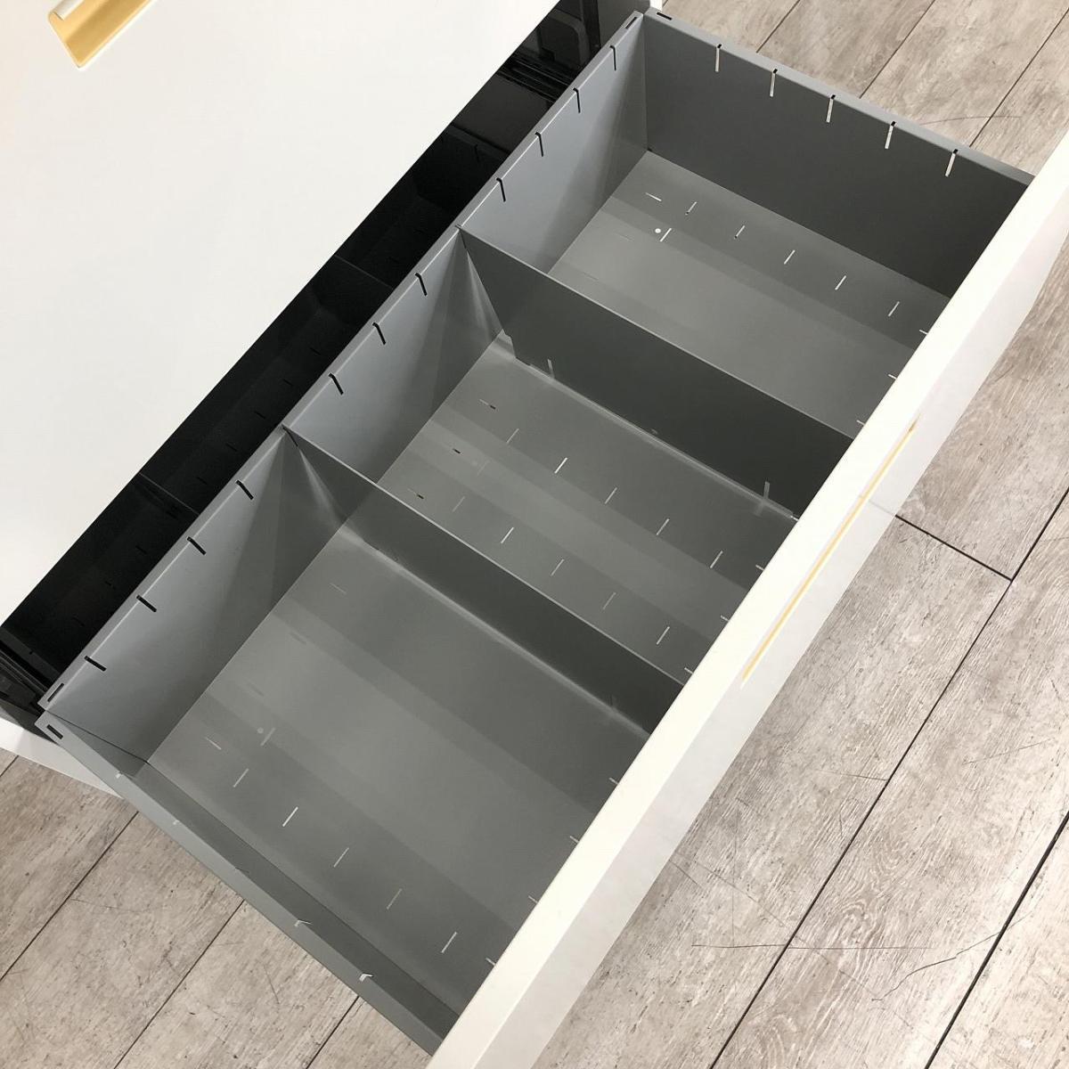 ボールスライドレールを採用したラテラルの引出しは、収納物をスムーズに出し入れでき、