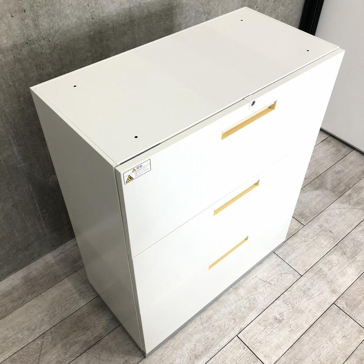 【在庫セール品】【定価約14万円】【オフィスの必需品!!大容量のローキャビネット!】■イナバ(Inaba) 3段ラテラル ローキャビネット W900×D450㎜ ■シリンダー錠 ■ホワイト ※取手日焼け有- 仙台店
