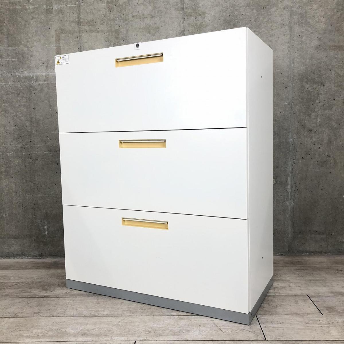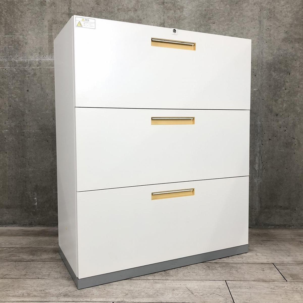 【在庫セール品】【定価約14万円】【オフィスの必需品!!大容量のローキャビネット!】■イナバ(Inaba) 3段ラテラル ローキャビネット W900×D450㎜ ■シリンダー錠 ■ホワイト ※取手日焼け有- 在庫数