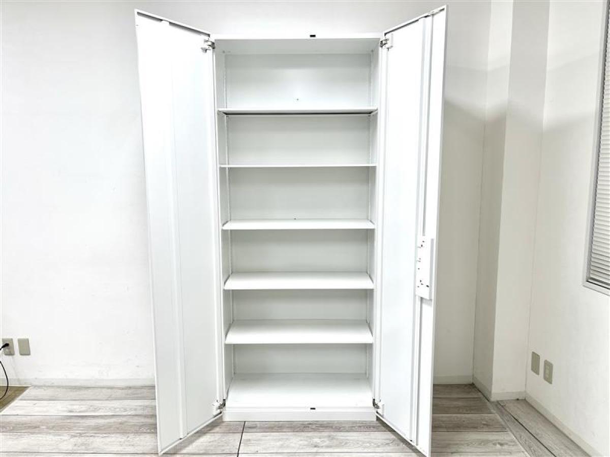 【扉を開けると一見で中身が確認できます!コクヨ製のハイキャビネット ※ベース6cm】コクヨ エディアシリーズ ホワイト 《オフィスバスターズ福岡博多店は、福岡を拠点として、日本全国へ中古オフィス用品・オフィス家具を提供しております》