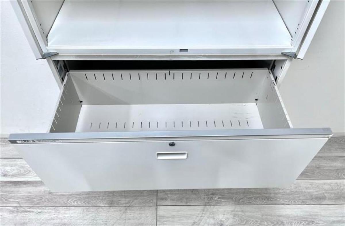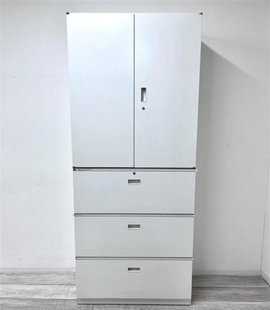 【在庫お探しいたします!/予約依頼商品】イトーキ製のハイキャビネット(両開き書庫+3段ラテラル書庫)【シンラインシリーズ/ホワイト色】 *良品を格安で!「オフィスバスターズ福岡南店」は、福岡を拠点として、全国へ中古オフィス用品・オフィス家具を提供しております