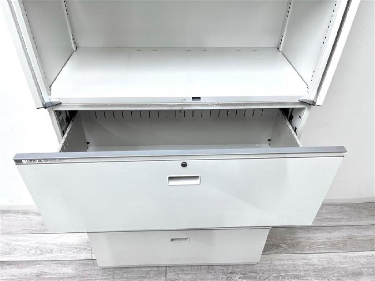 【少し特殊な上下書庫が入荷!!】 シンライン HTM-149HVS-W9、HTM-109AAS-W9 イトーキ/ITOKI ハイキャビネット/両開き+3段ラテラル 〈CS在庫〉 〈愛知、岐阜、三重、静岡、長野、福井、石川〉