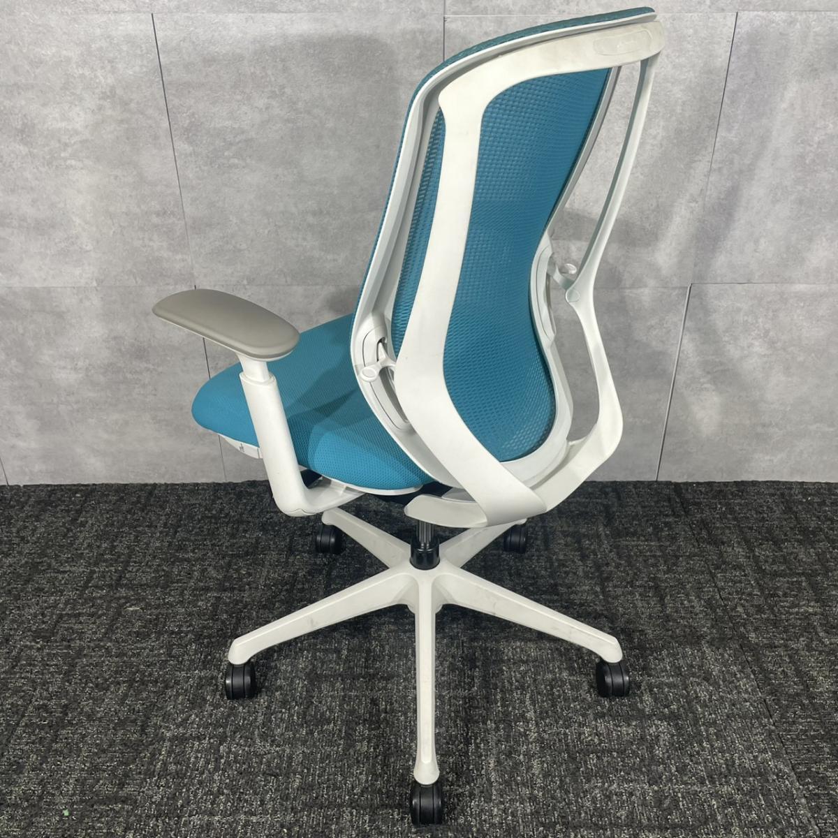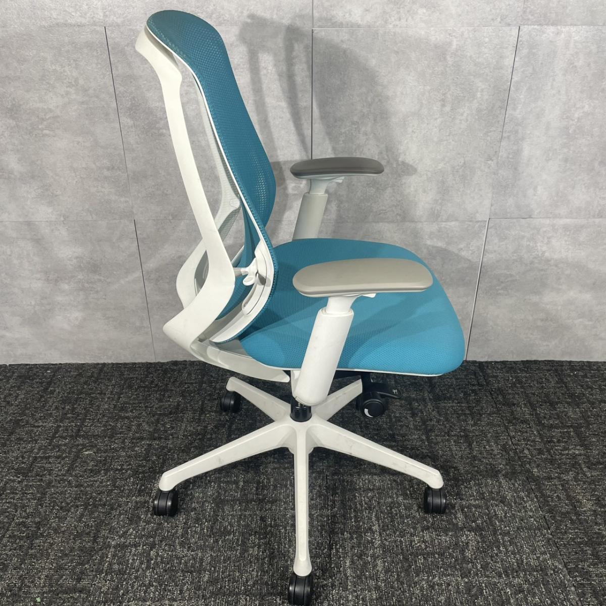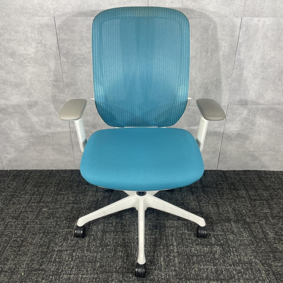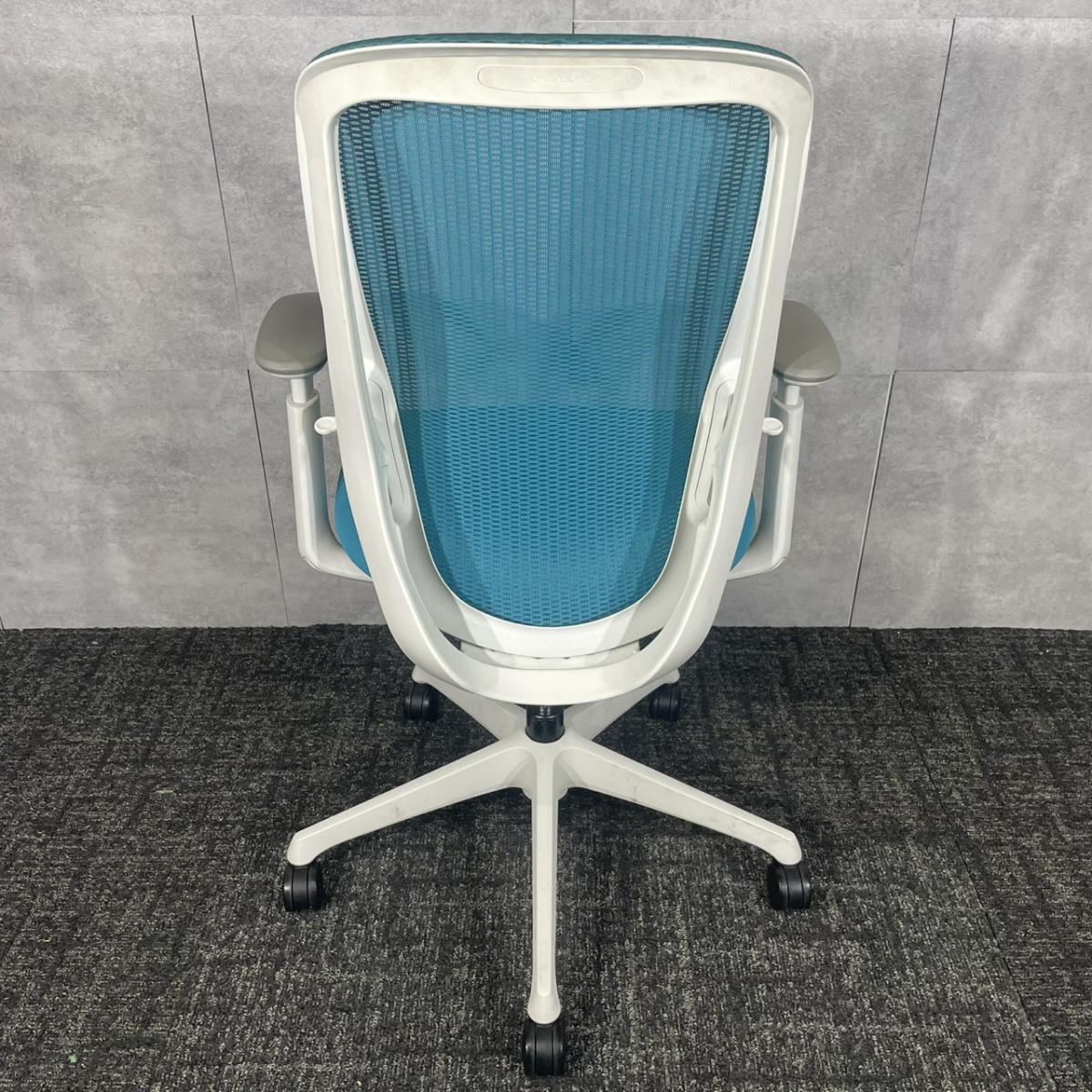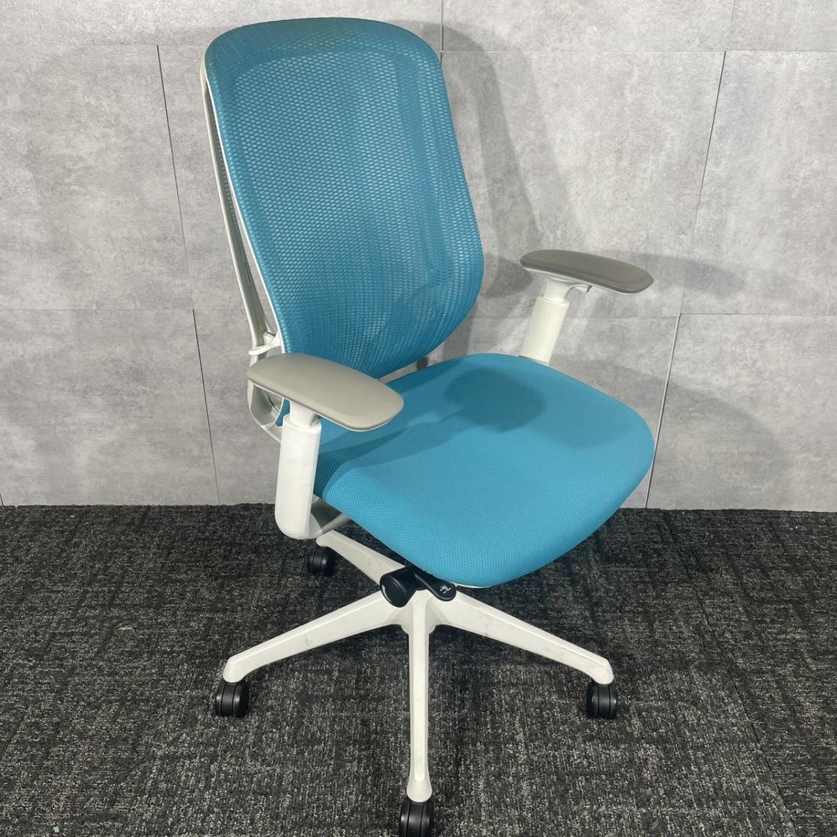 《現物写真だから安心!》オカムラ製の人気オフィスチェア【シルフィーメッシュ/可動肘/ヘッドレスト付き/ブルーグリーン】が先着1名様ご案内可能です!