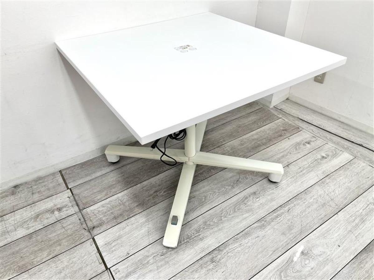 【在庫入替セール品】【定価約10万円】【折り畳み可能な角テーブル!】■オカムラ/ライブスシリーズ ■ホワイト ■キャスター付き ■コンセントユニット付