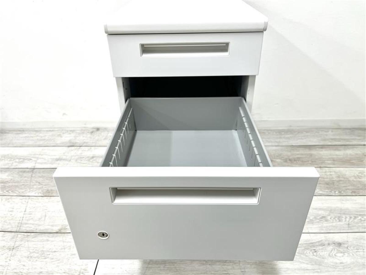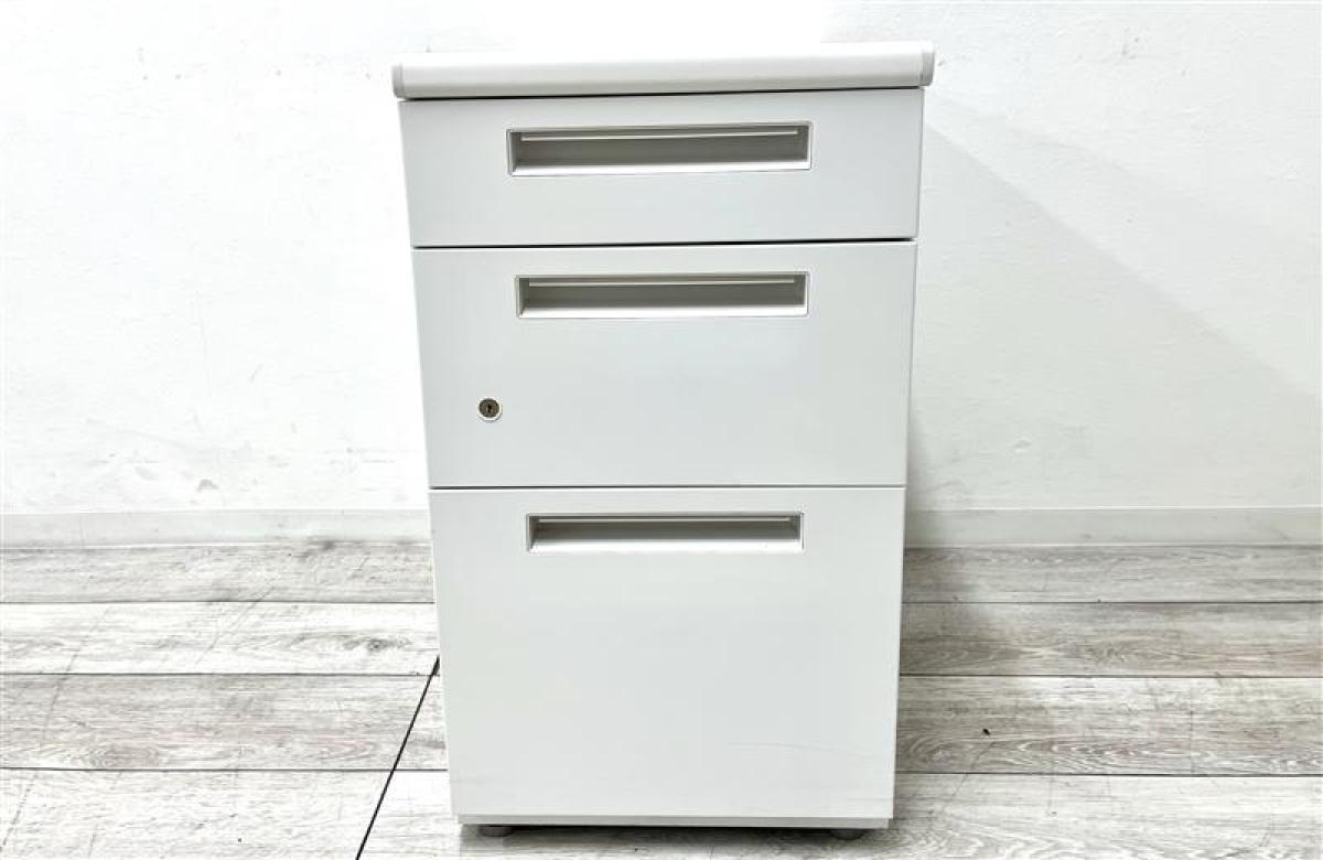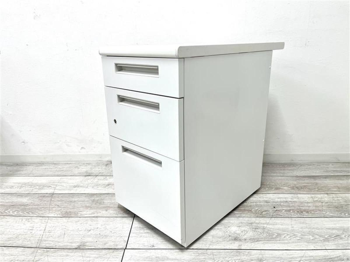 【在庫セール品】【定価約7万円】【書類の整理に便利な3段脇机!】■イナバ製/VDN ■ホワイト ■シリンダー錠- 在庫数